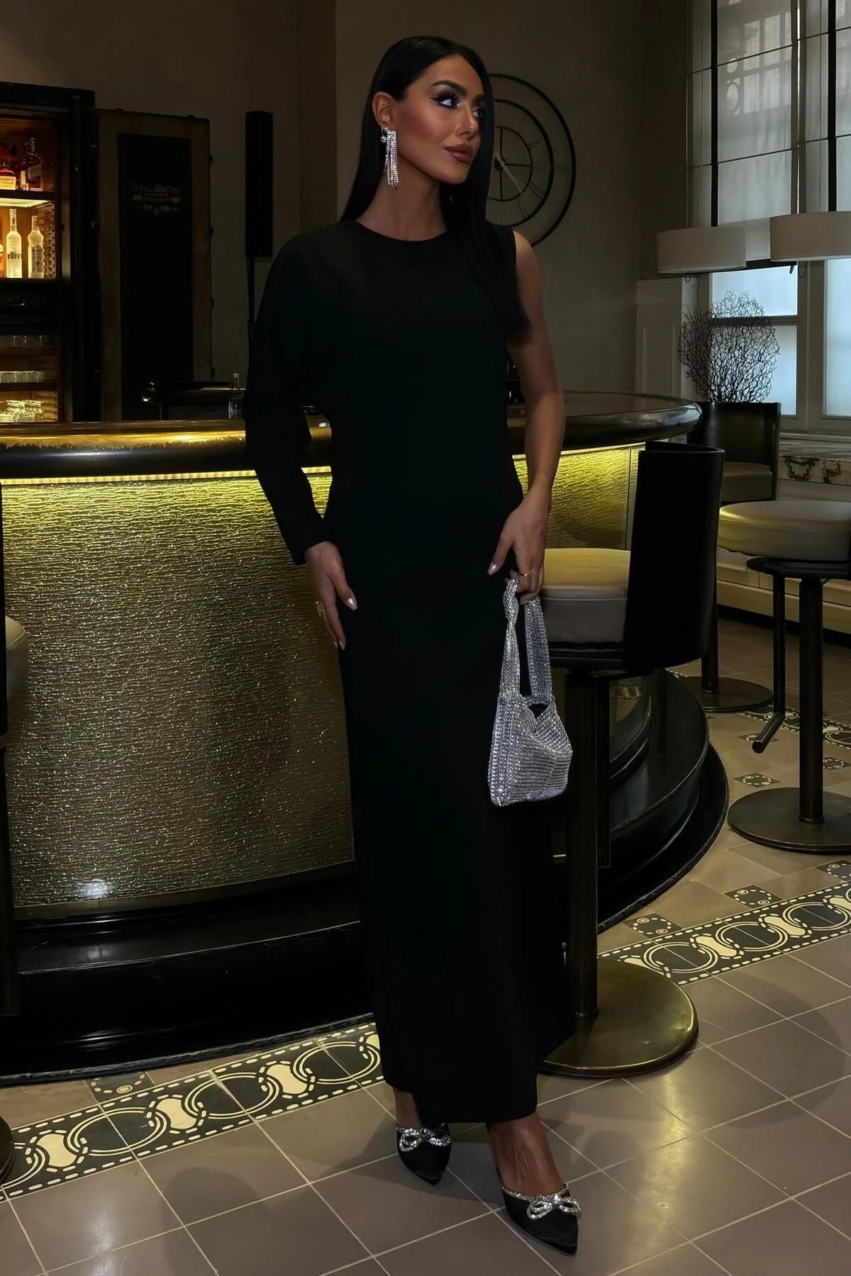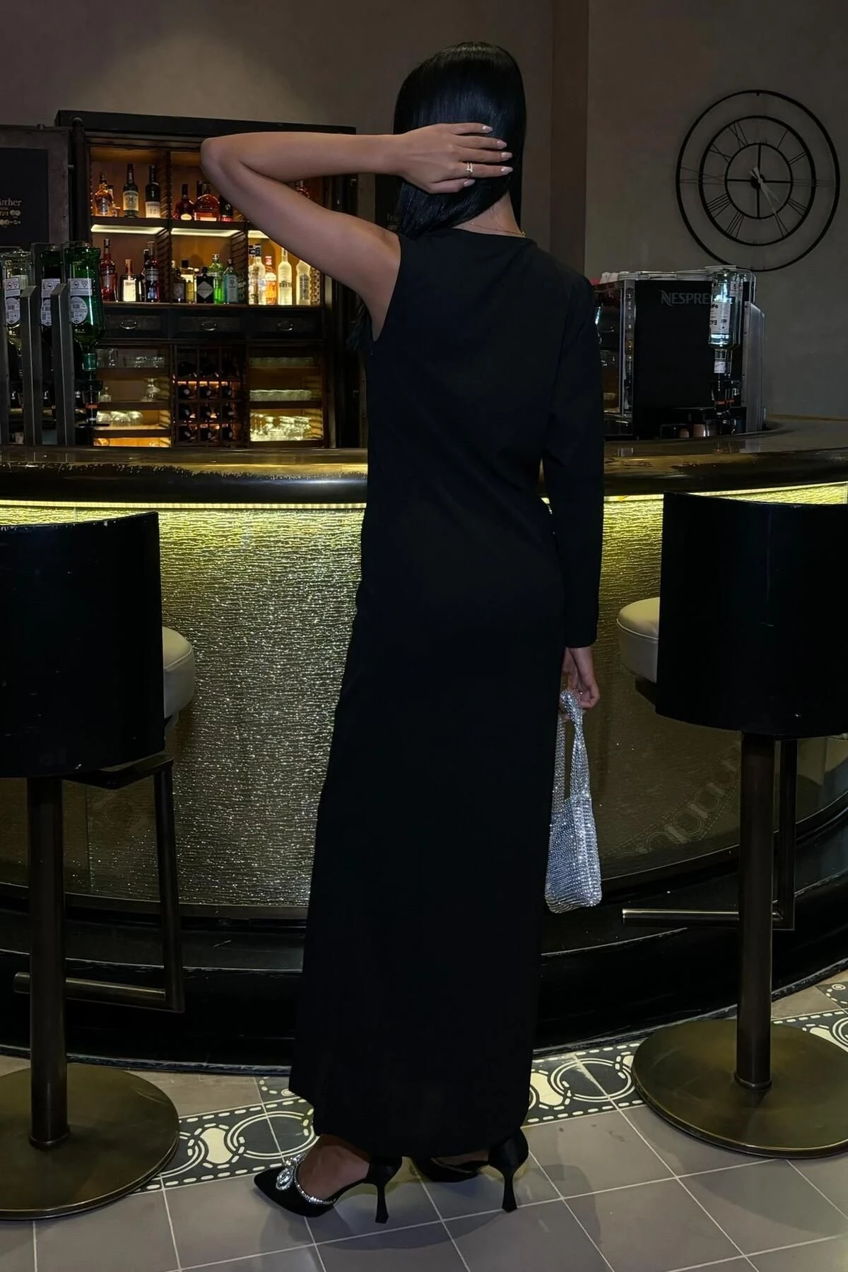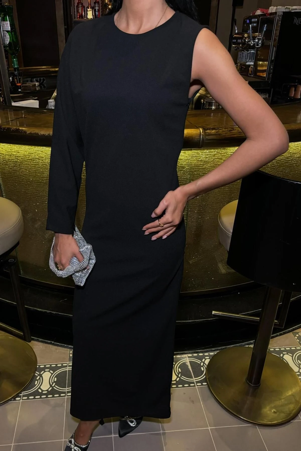 Kadın Siyah Uzun Dokuma Tek Kol Elbise
