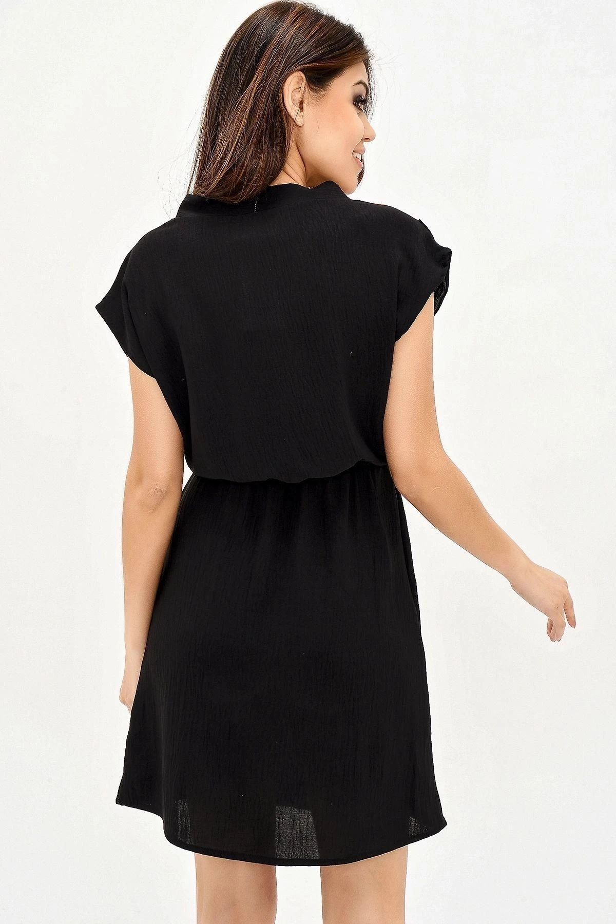 Bu siyah renkli V yaka bloklu kısa kollu dizüstü aerobin elbise, şık ve modern bir görünüm sunmak için özenle tasarlanmıştır.; Elbisenin midi boyu, diz üstünde yer alır ve hem ofis ortamında hem de günlük hayatta rahatlıkla tercih edilebilir.; Elbisenin kumaşı, %60 polyester ve %40 pamuktan oluşur.; Bu karışım, hem dayanıklılık sağlar hem de nefes alabilen bir yapıya sahiptir.; Polyester, kolay kırışmaz özelliğiyle pratik bir kullanım sunarken, pamuk dokusu cildinize yumuşak ve rahat bir his verir.; Siyah renk, zamansız şıklığın simgesidir ve her mevsimde rahatlıkla tercih edilebilir.; V yaka detayı, zarif bir görünüm sunarken, bloklu desen tasarımı da elbiseye modern bir hava katmaktadır.; Kısa kollu tasarım, kolay hareket edebilmenizi sağlarken, beli lastik detayı ise vücut hatlarınızı öne çıkararak hoş bir şekil verir.; Bu regular kesimli midi boy elbise, hem ofis ortamında profesyonel bir görünüm elde etmek isteyenler hem de günlük hayatta şık ve rahat bir tarz arayanlar için mükemmel bir seçimdir.; Kullanımı kolay ve şık tasarımıyla göz kamaştıran bu elbise, gardırobunuzun vazgeçilmez bir parçası olacak.