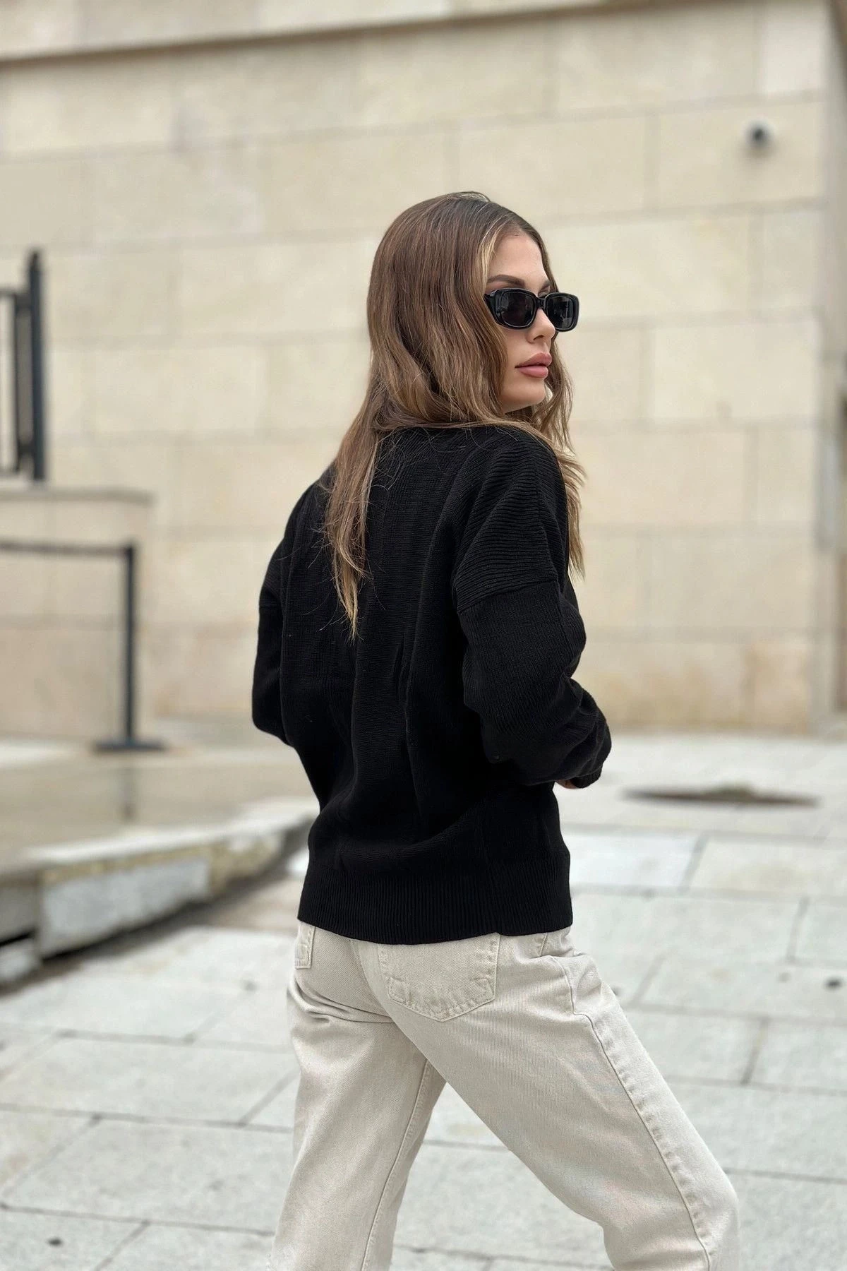 Siyah Kadın Kazak