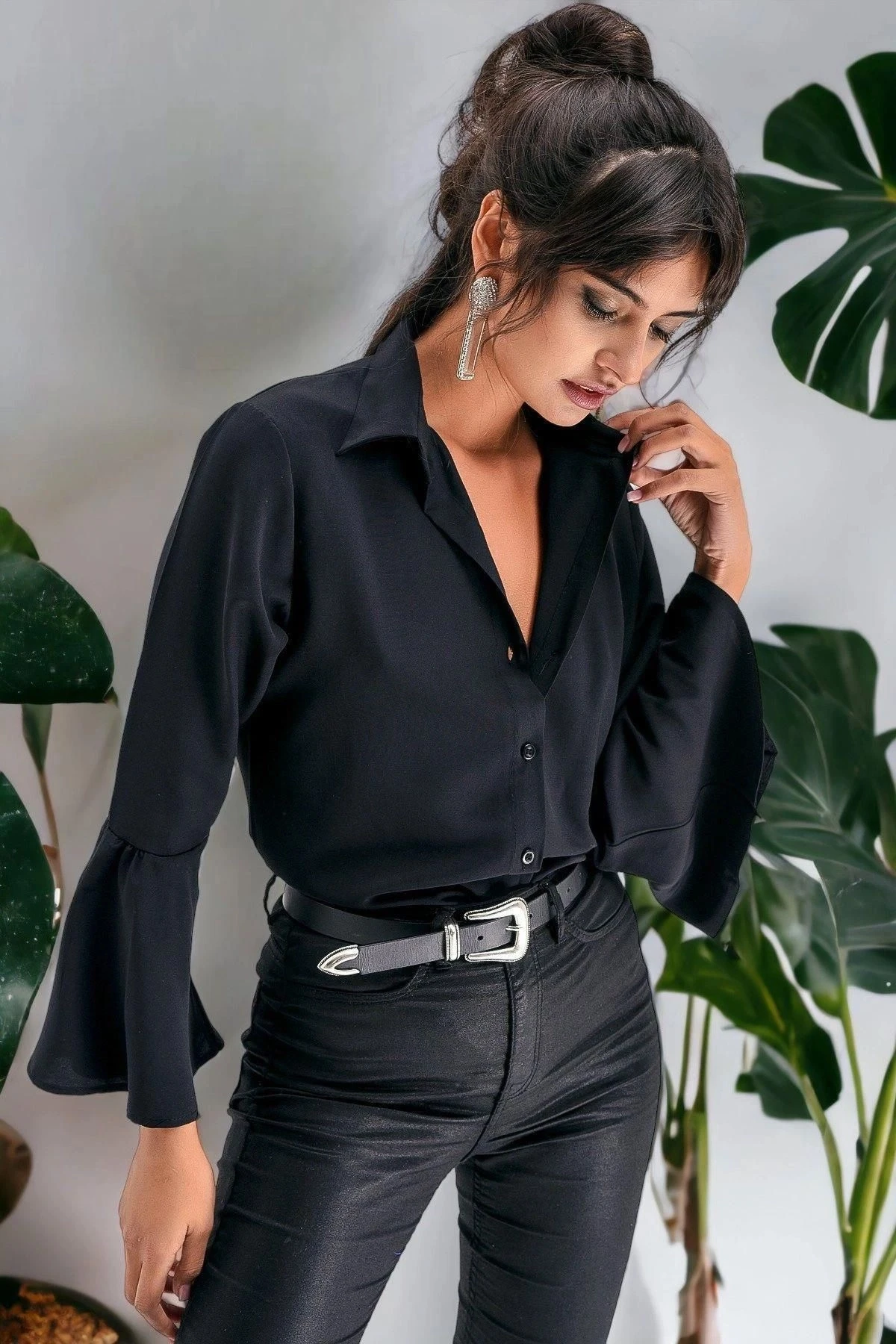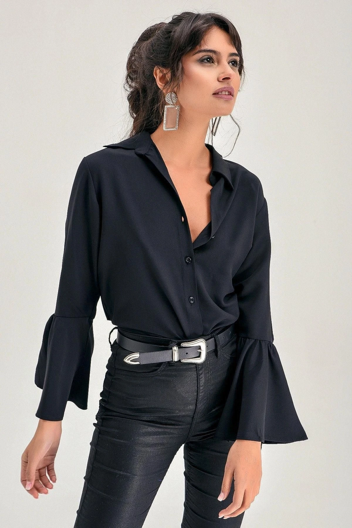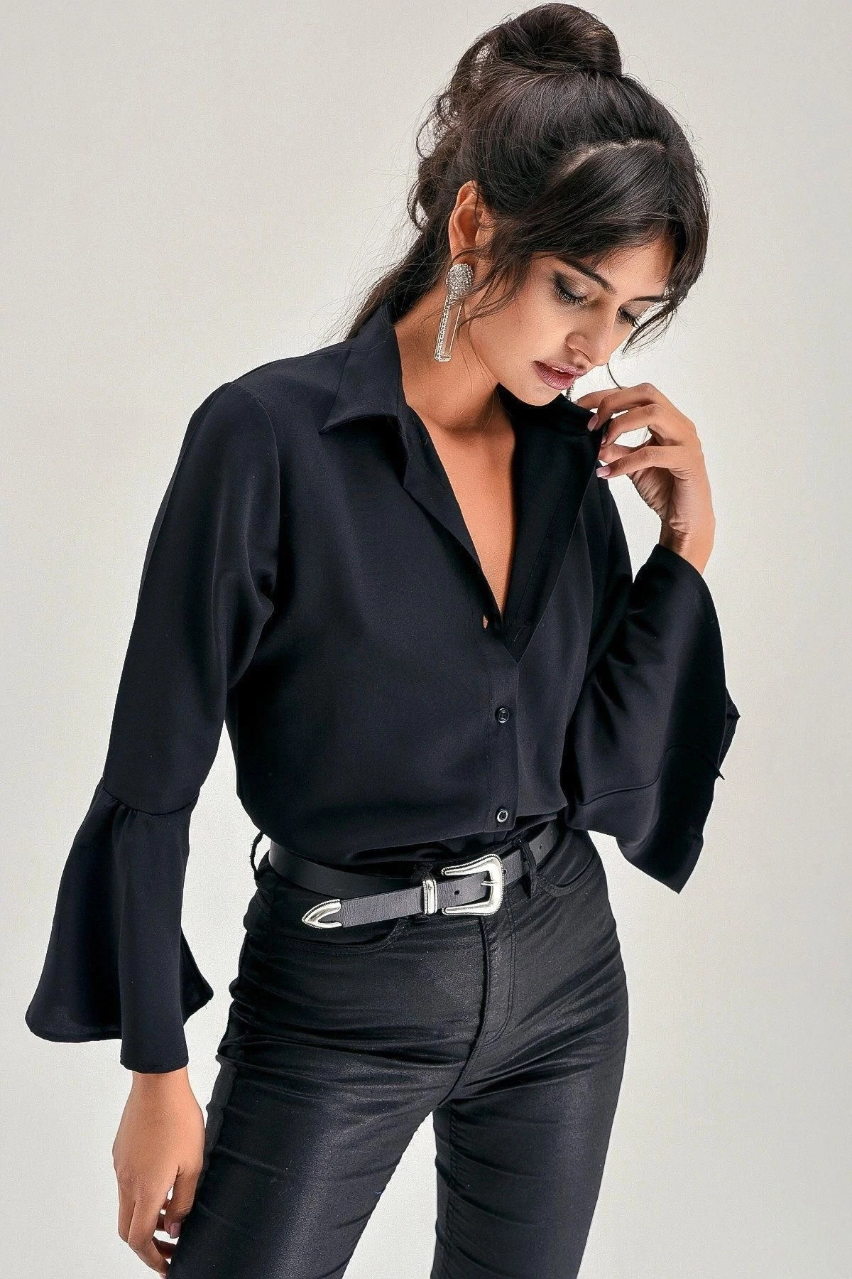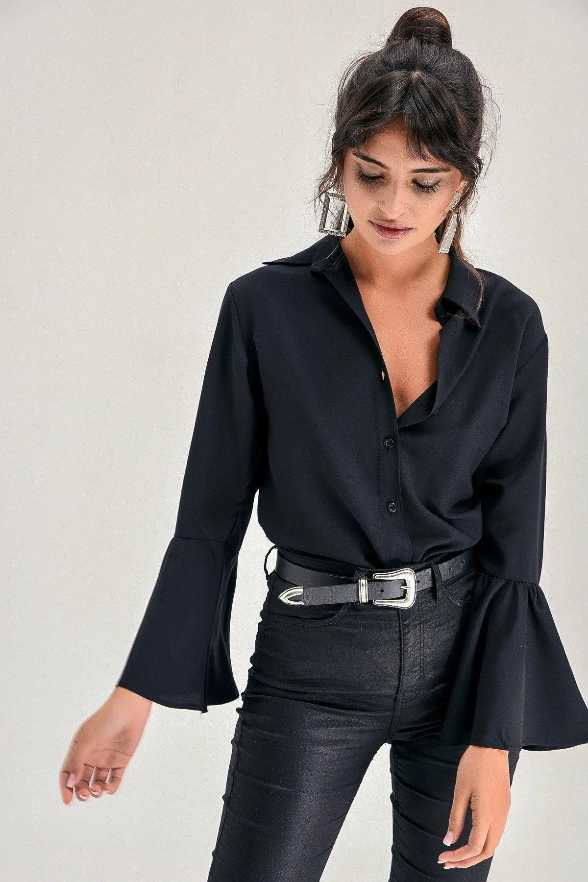 Bu Siyah Renk Volan Detaylı Uzun Kol Regular Kesim Standart Boy Gömlek, modern ve şık bir görünüm sunan benzersiz bir tasarıma sahiptir.; Gömleğin kumaşı, %100 Polyesterden üretilmiştir, bu da ürünün kaliteli, dayanıklı ve konforlu olduğunu garanti eder.; Siyah renk, her zaman şıklığı simgeler ve herhangi bir kıyafetle mükemmel bir şekilde uyum sağlar.; Bu gömleği herhangi bir etkinlikte, iş toplantısında veya özel bir davette gönül rahatlığıyla tercih edebilirsiniz.; Volan detayları, bu gömleği özel kılan ayrıntılardan biridir.; Volanlar, hareketli ve feminen bir görünüm yaratırken, aynı zamanda gömleğe hareket ve dinamizm katar.; Bu detay, giyim tarzınıza benzersiz bir dokunuş ekler.; Uzun kollu tasarım, mevsim geçişlerinde veya serin havalarda ek bir koruma sağlar.; Rahat regular kesim, gömleğin her bedene uyum sağlamasını ve hareket özgürlüğü sunmasını sağlar.; Standart boyu ise klasik bir görünüm sunar ve herhangi bir pantolon veya etekle mükemmel şekilde eşleşir.; Bu gömlek, günlük giyimden özel etkinliklere kadar birçok farklı stil için uygundur.; Şık bir iş takımıyla kombinleyerek profesyonel bir görünüm elde edebilir veya kot pantolon ve spor ayakkabılarla rahat bir şekilde kullanabilirsiniz.; Üstün kalitesi, dayanıklılığı ve şık tasarımıyla Siyah Renk Volan Detaylı Uzun Kol Regular Kesim Standart Boy Gömlek, gardırobunuzun vazgeçilmez bir parçası olacak.; Bu gömleği tercih ederek tarzınızı ve şıklığınızı ortaya koyabilirsiniz.