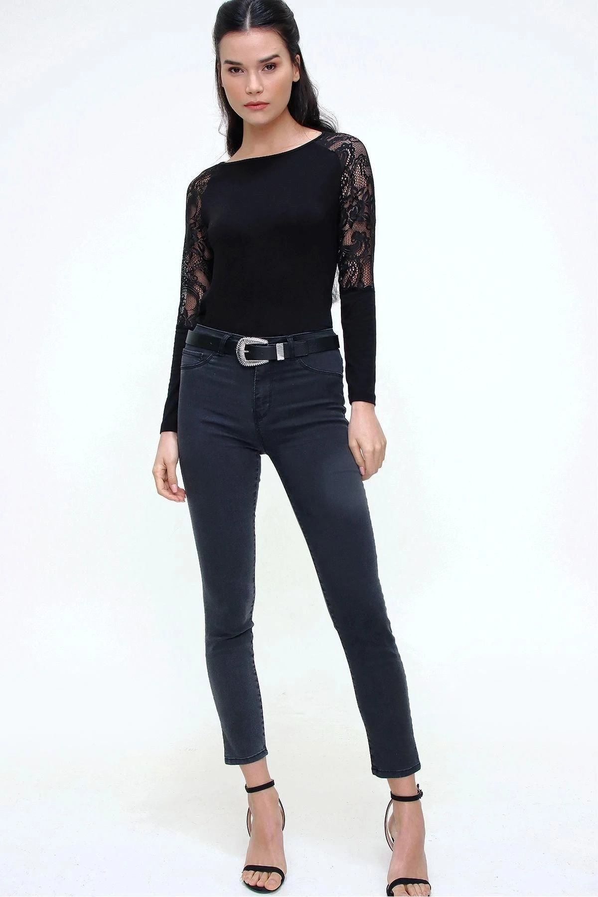 Bu şık ve zarif bluz, şıklığıyla dikkat çekeceğiniz her ortamda mükemmel bir seçenektir.; Siyah renkli tasarımı, klasik ve zamansız bir görünüm sunarken, yuvarlak yaka detayı da şıklığını tamamlar.; Bu bluzun en öne çıkan özelliklerinden biri dantel detaylarıdır.; Dantel işlemeleri, bluza zarif ve feminen bir hava katarak, sizi özel kılar.; Uzun kollu tasarımı sayesinde bluz, daha sofistike bir görünüm sunar ve mevsim geçişlerinde de kullanmanızı sağlar.; Yumuşak dokulu ve kaliteli kumaş kullanılarak üretilen bu bluz, konforlu bir giyim deneyimi sunar.; %95 Polyester ve %5 Elastane içeriği, bluzun esnekliğini ve hareket özgürlüğünü artırırken, kolayca şekil almasını sağlar.; Düz kesimli ve standart boyuyla, her bedene uyum sağlar ve şık bir siluet oluşturur.; Bu bluz, iş yerinde, özel davetlerde veya günlük yaşamda stilinizi tamamlamak için mükemmel bir seçenektir.; Şıklık, rahatlık ve kalite arayanlar için ideal bir tercih olan bu bluzu gardırobunuza eklemekten mutluluk duyacaksınız.
