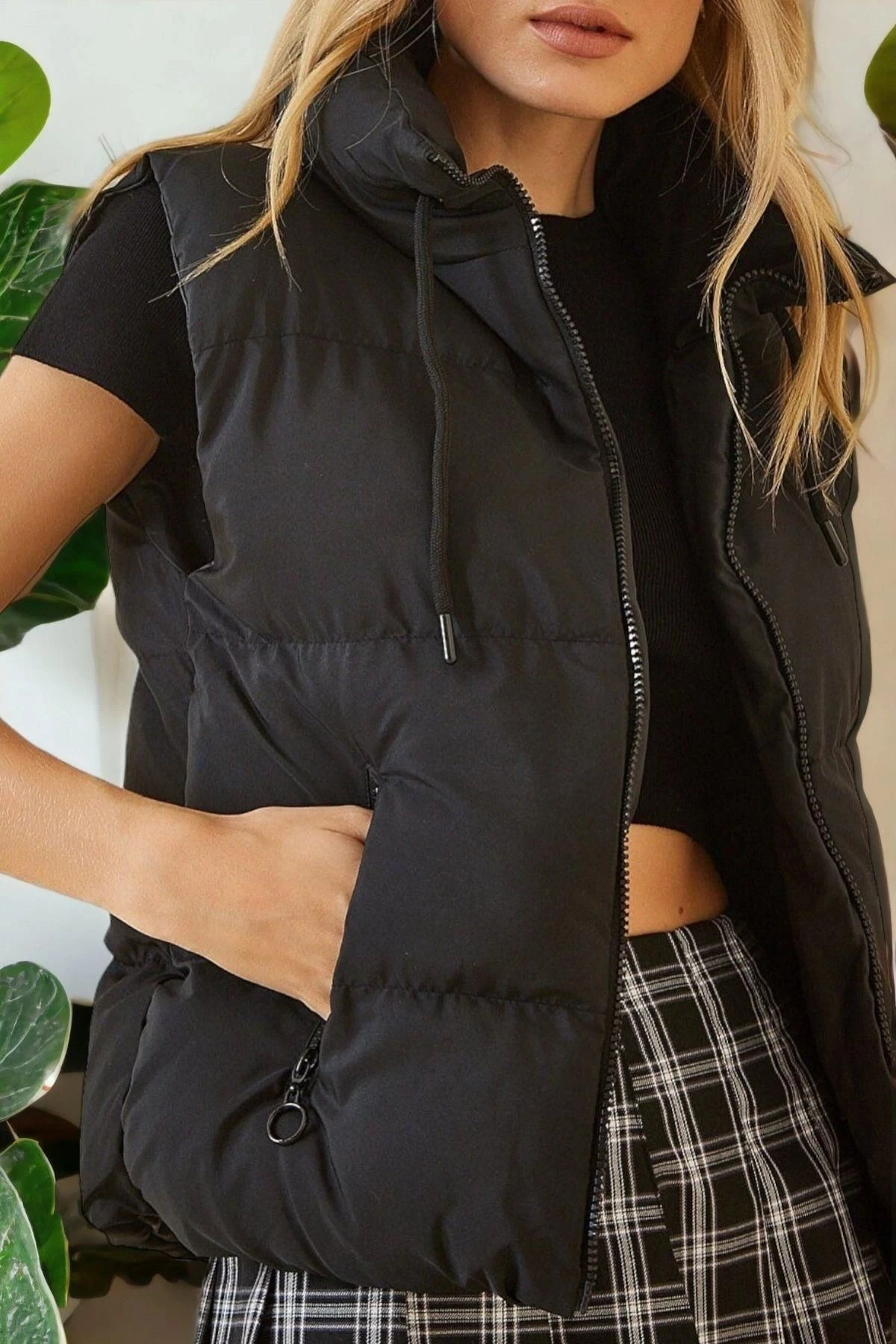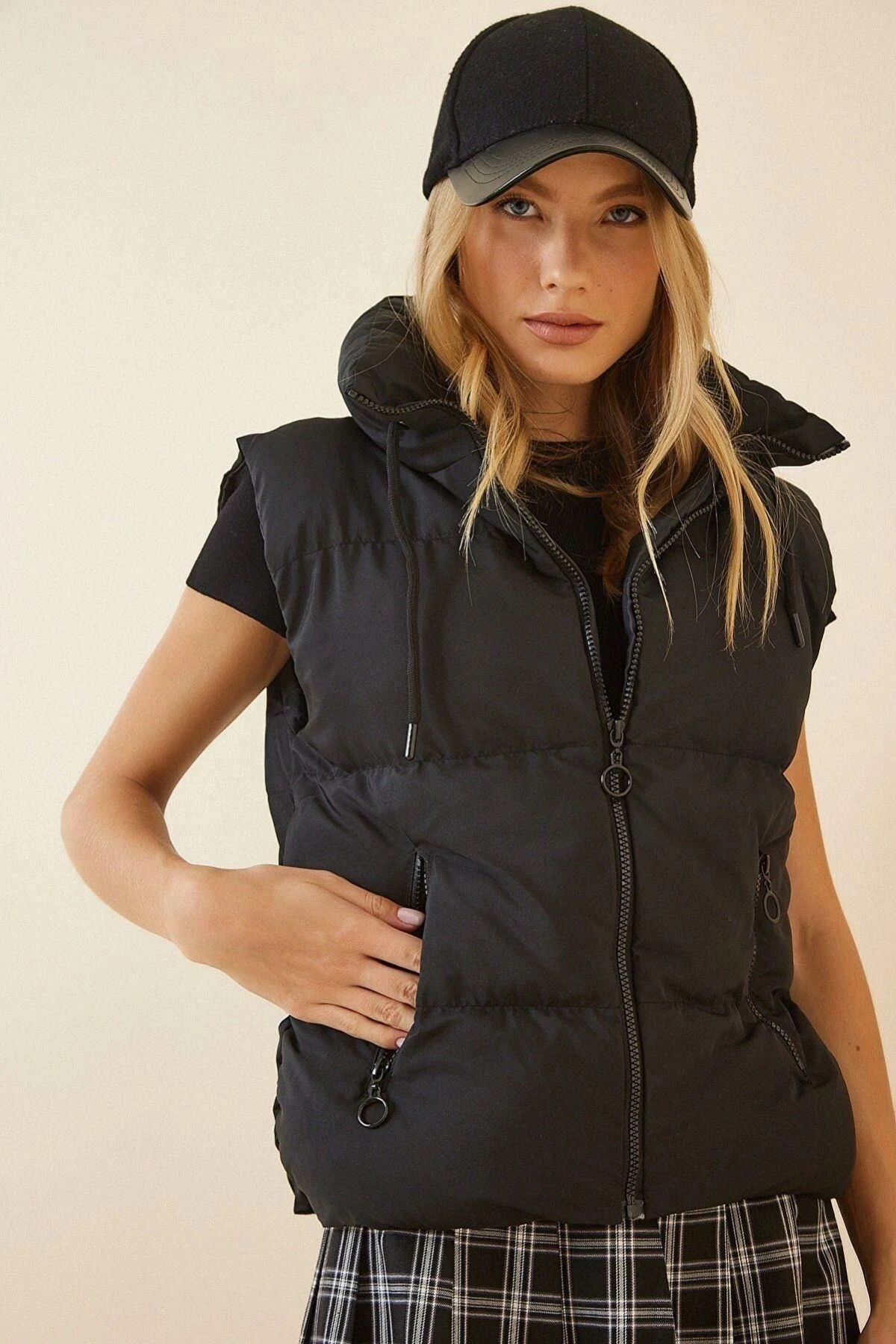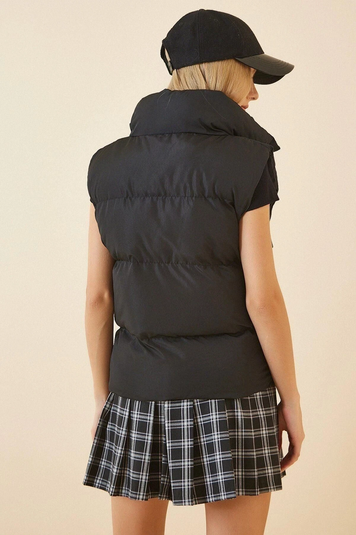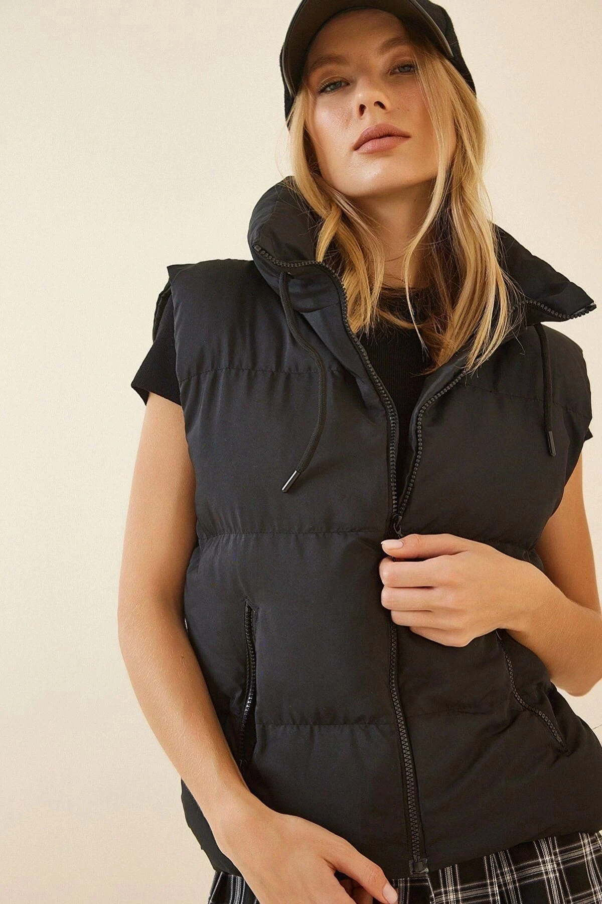 Kadın Siyah Yuvarlak Yaka, Sıfır Kol, Cep Detaylı, Şişme, Regular Kesim, Standart Boy Elbise.