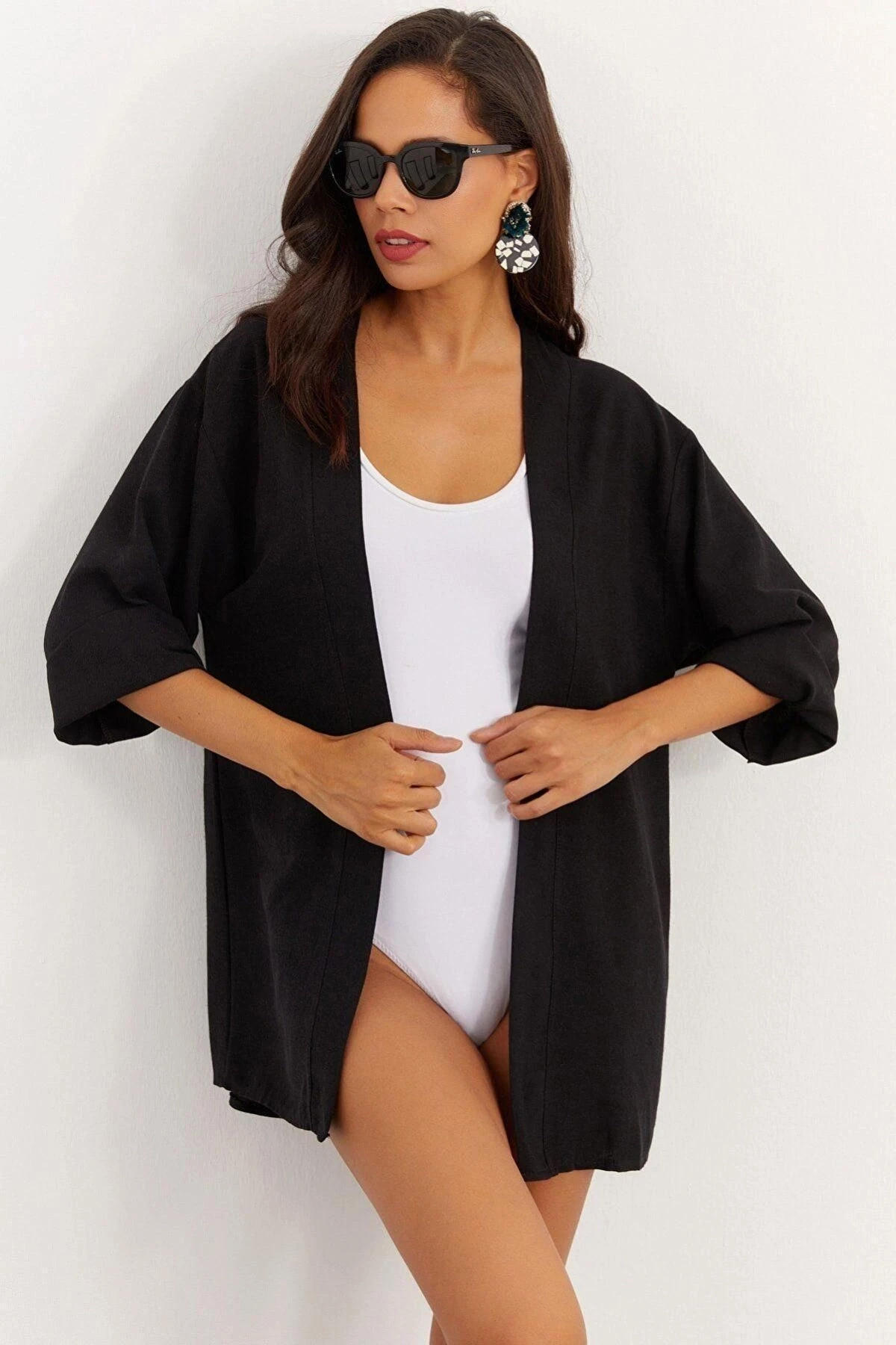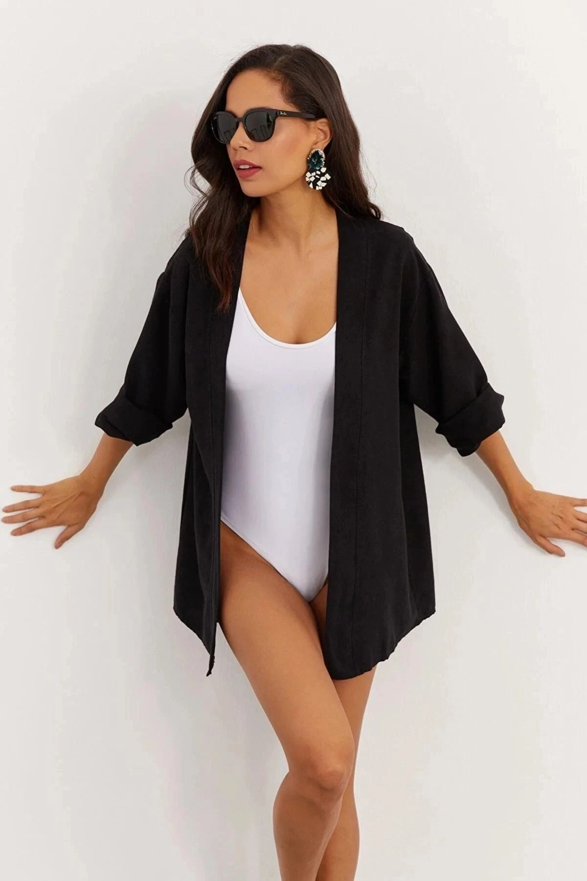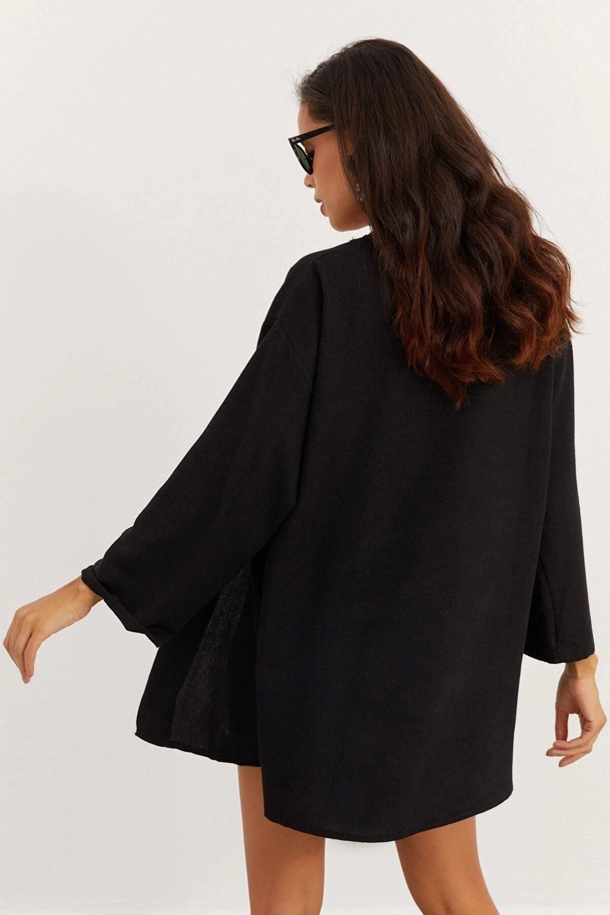 Kadın Siyah Yuvarlak Yaka, Truvakar Kol, Basic, Regular Kesim, Standart Boy Ceket