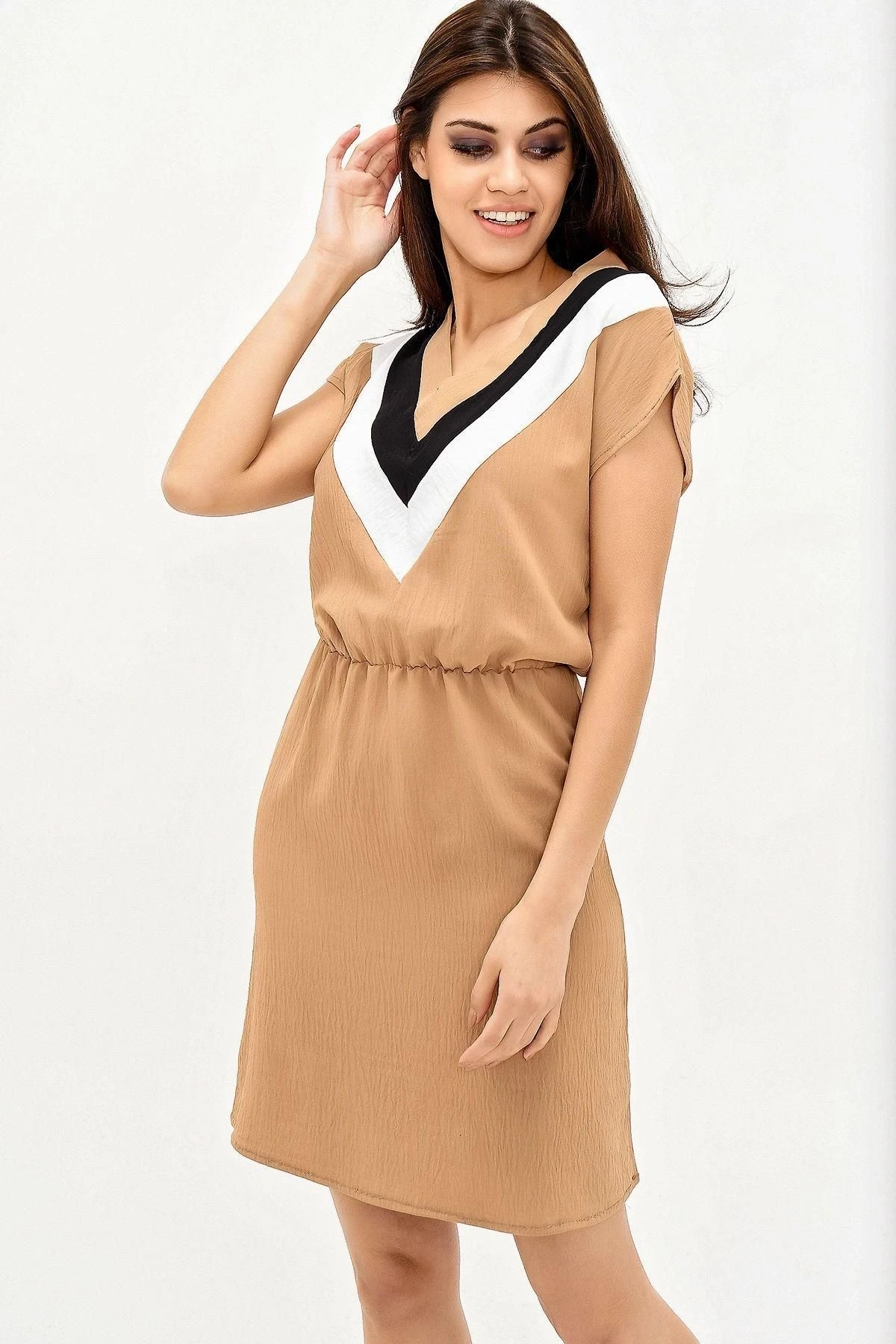 Yeni Taba Renk V Yaka Bloklu Kısa Kollu Dizüstü Aerobin Elbise, tarzınıza şık bir güncelleme getirecek mükemmel bir seçenektir.; Bu elbise, hem ofis ortamında hem de günlük hayatta harika bir görünüm sağlamak için tasarlanmıştır.; Elbisenin kumaş içeriği %60 Polyester ve %40 Cotton'dan oluşur, bu da size dayanıklılık ve konfor sunar.; Polyester ve pamuğun mükemmel bir kombinasyonu, elbisenin uzun süre dayanmasını ve şeklini korumasını sağlar.; Aynı zamanda cilt dostudur ve nefes alabilir özellikleri sayesinde rahat bir his sağlar.; Taba rengi, modern ve sofistike bir seçimdir.; Bu sıcak ve zengin renk, herhangi bir mekanda dikkat çekmenizi sağlayacak ve size özgüven verecektir.; V yaka tasarımı, boyun çizginizi vurgulayarak zarif bir siluet oluşturur ve feminin bir etki yaratır.; Elbisenin bloklu deseni, stilinize dinamizm katar ve göze hoş gelen bir kontrast yaratır.; Bu detay, sıradan bir elbise yerine özel bir parça olduğunu vurgular.; Kısa kollu tasarımı, yaz aylarında serin ve ferah hissetmenizi sağlar.; Belindeki lastik detayı, vücudunuzun doğal hatlarını öne çıkarır ve elbisenin size mükemmel bir şekilde oturmasını sağlar.; Bu, elbisenin belinizi sıkıca sararak zarif bir siluet oluşturmasına yardımcı olur.; Regular kesim midi boyu, hem profesyonel bir ortamda hem de günlük yaşamda mükemmel bir uyum sağlar.; Diz üstü uzunluğu, zarif ve sofistike bir görünüm sunarken aynı zamanda hareket özgürlüğü sağlar.; Bu taba renkli V yaka bloklu kısa kollu dizüstü aerobin elbise, ofis şıklığını ve günlük rahatlığı bir araya getirir.; Şık tasarımı ve dikkat çekici detaylarıyla öne çıkar.; Kendinizi hem rahat hem de şık hissetmek için bu elbiseyi tercih edebilirsiniz.