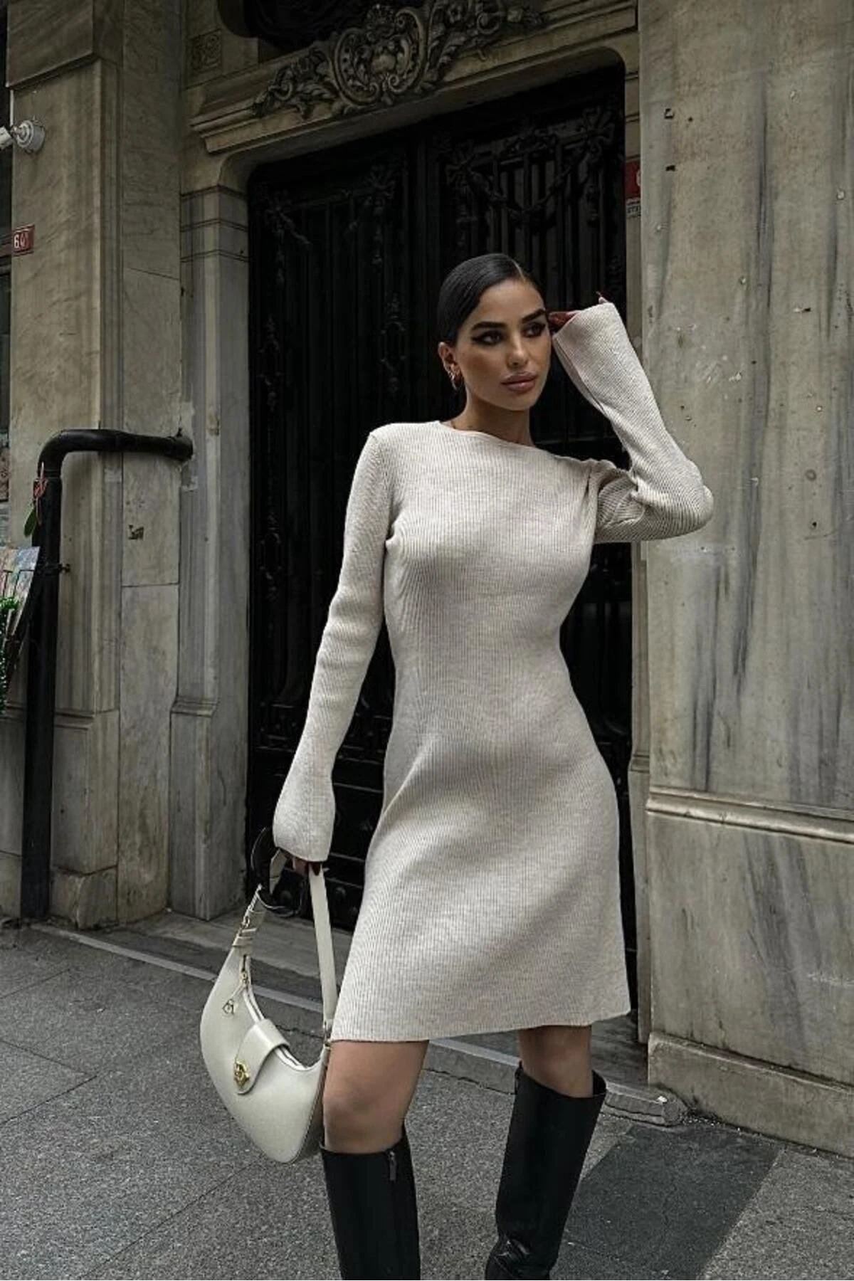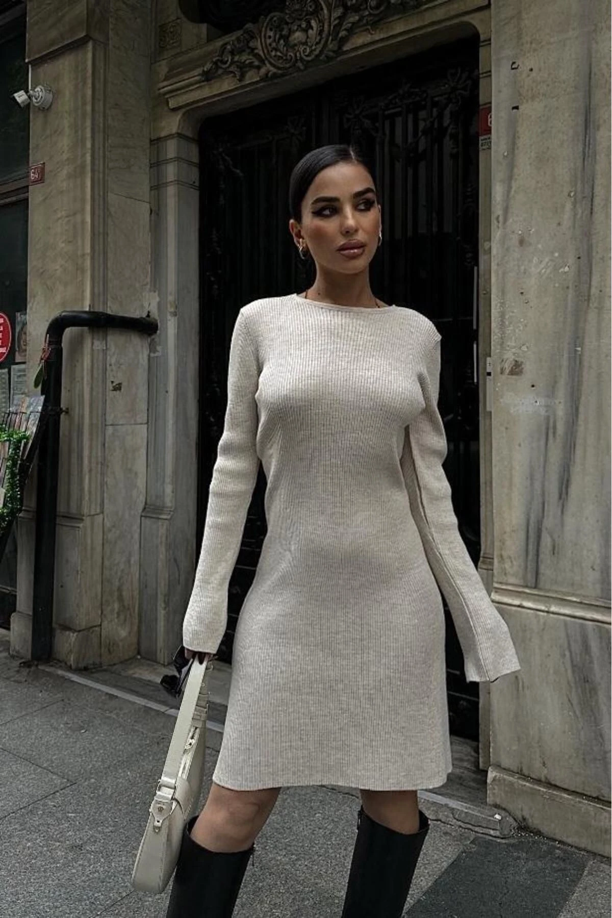 Kadın Taş Akrilik Triko Kısa Elbise