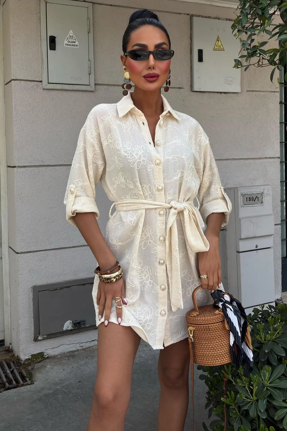 Kadın Taş Desenli Dokuma Uzun Polo Yaka Elbise