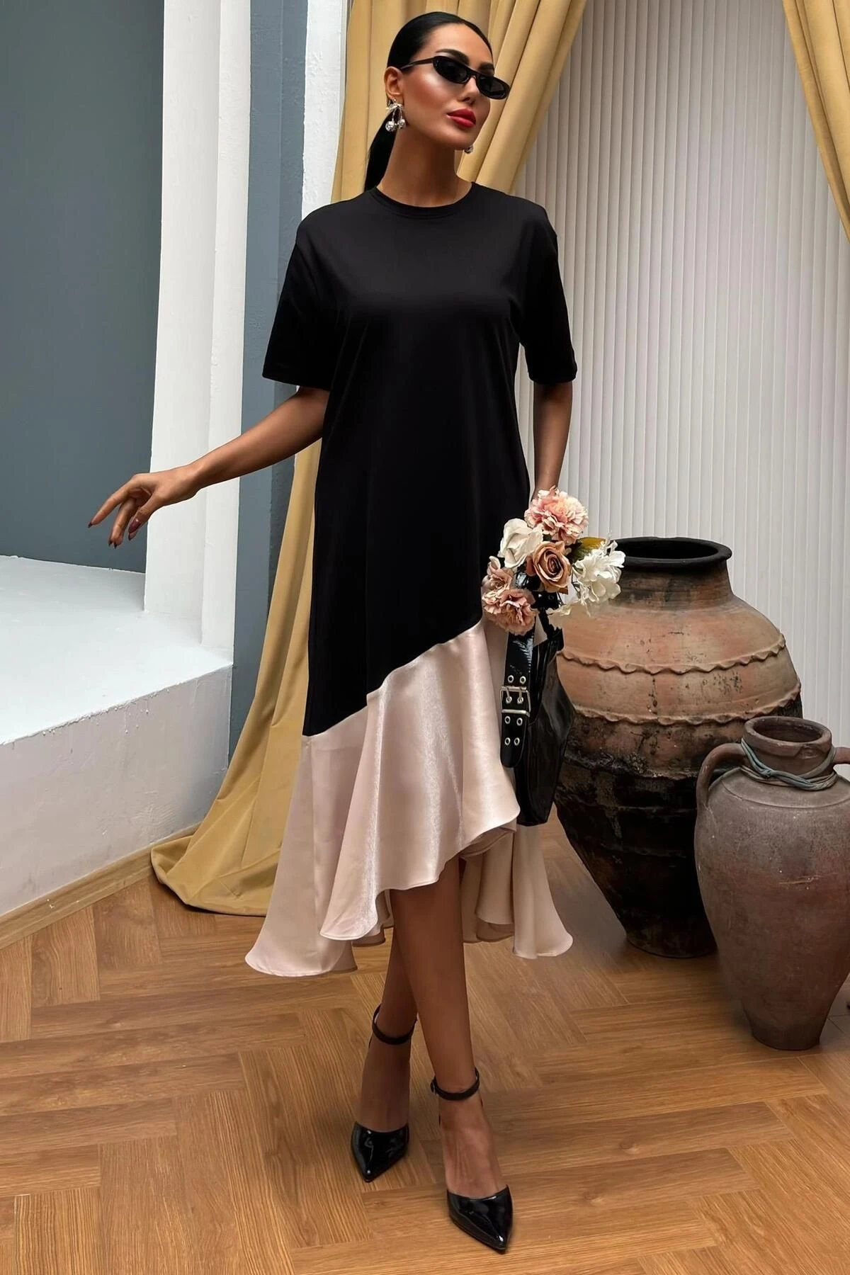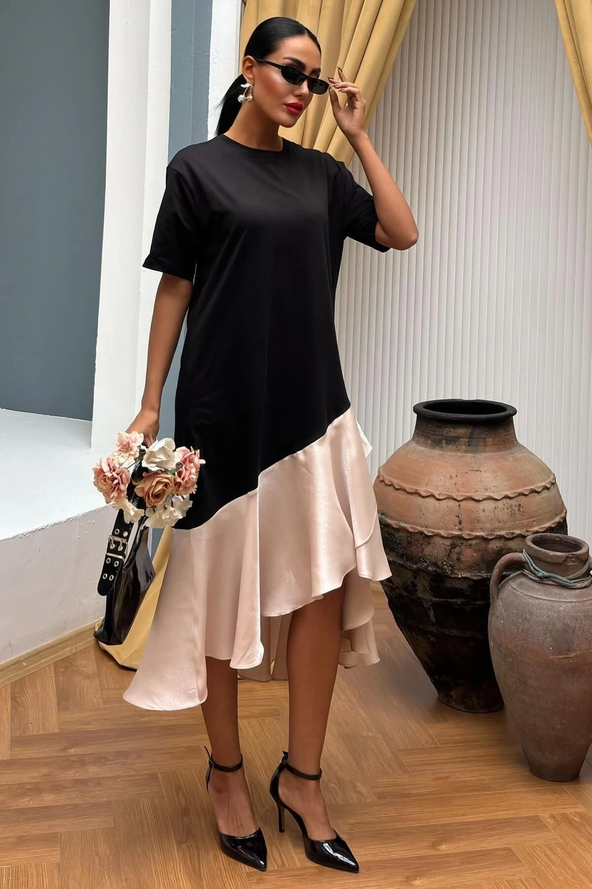 Kadın Taş Dokuma Midi Bisiklet Yaka Elbise