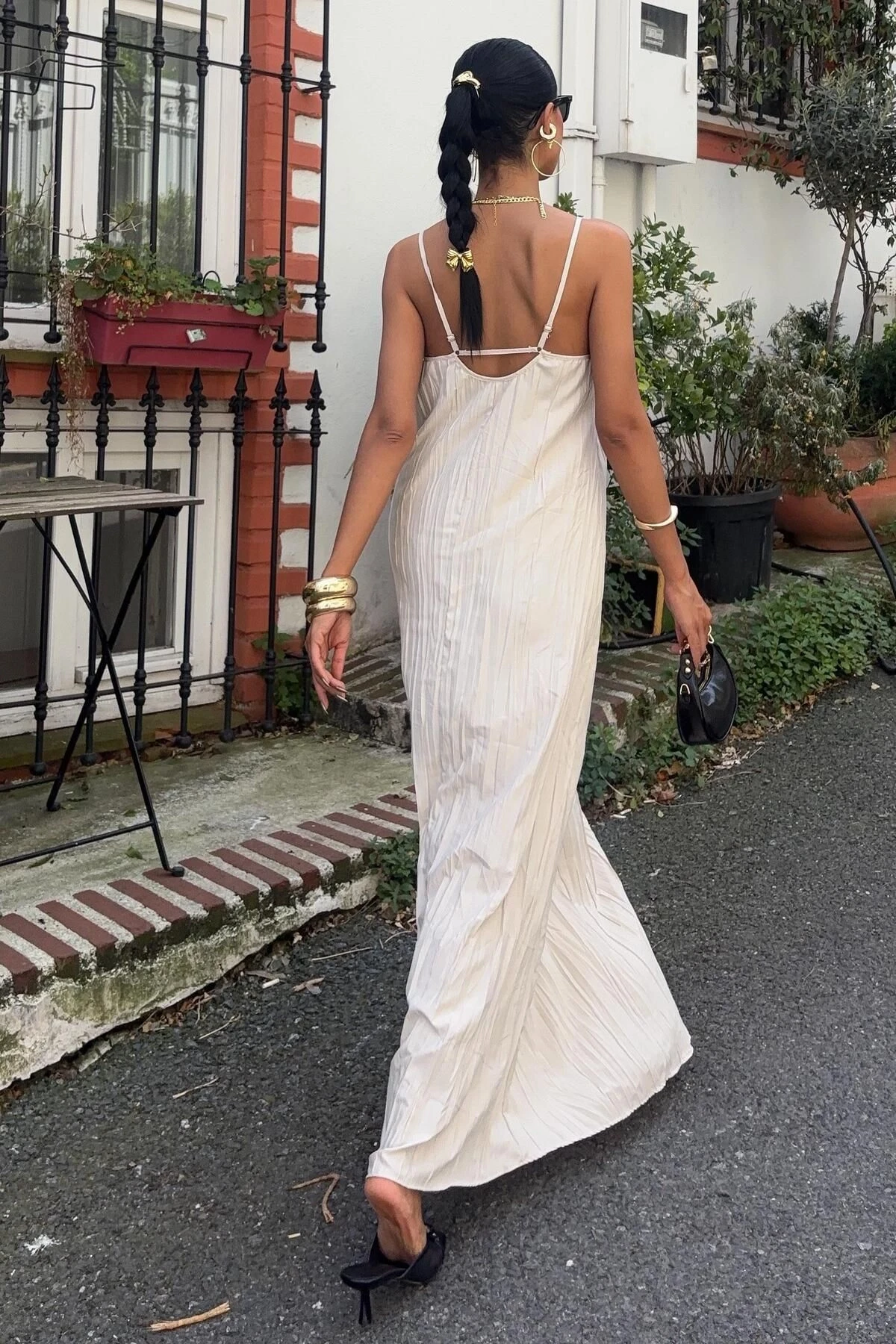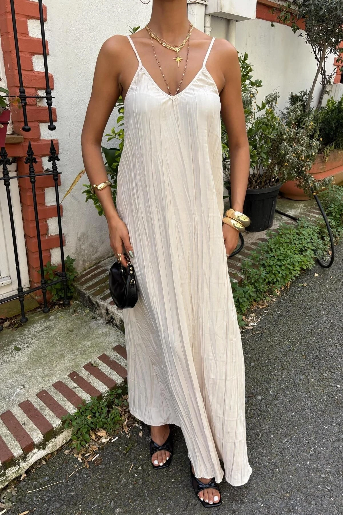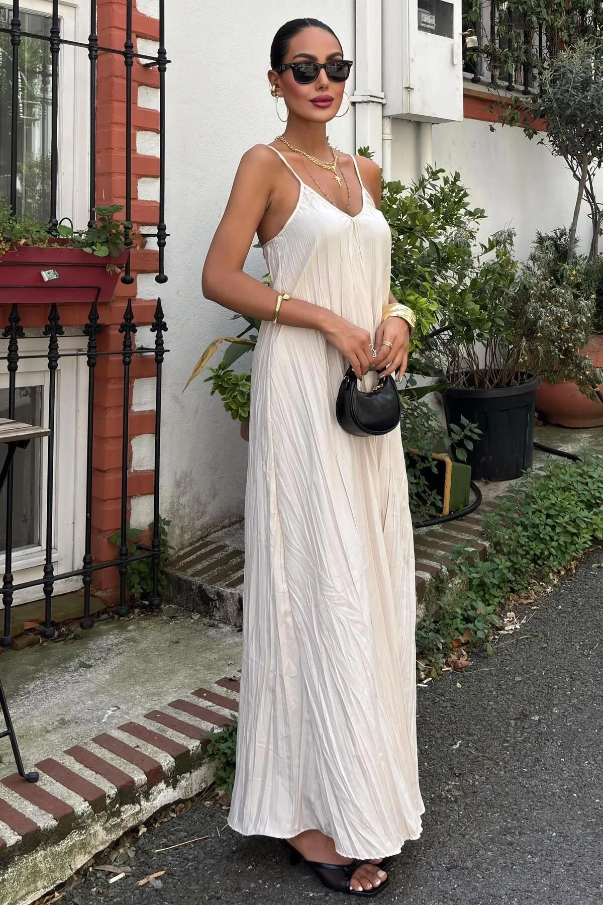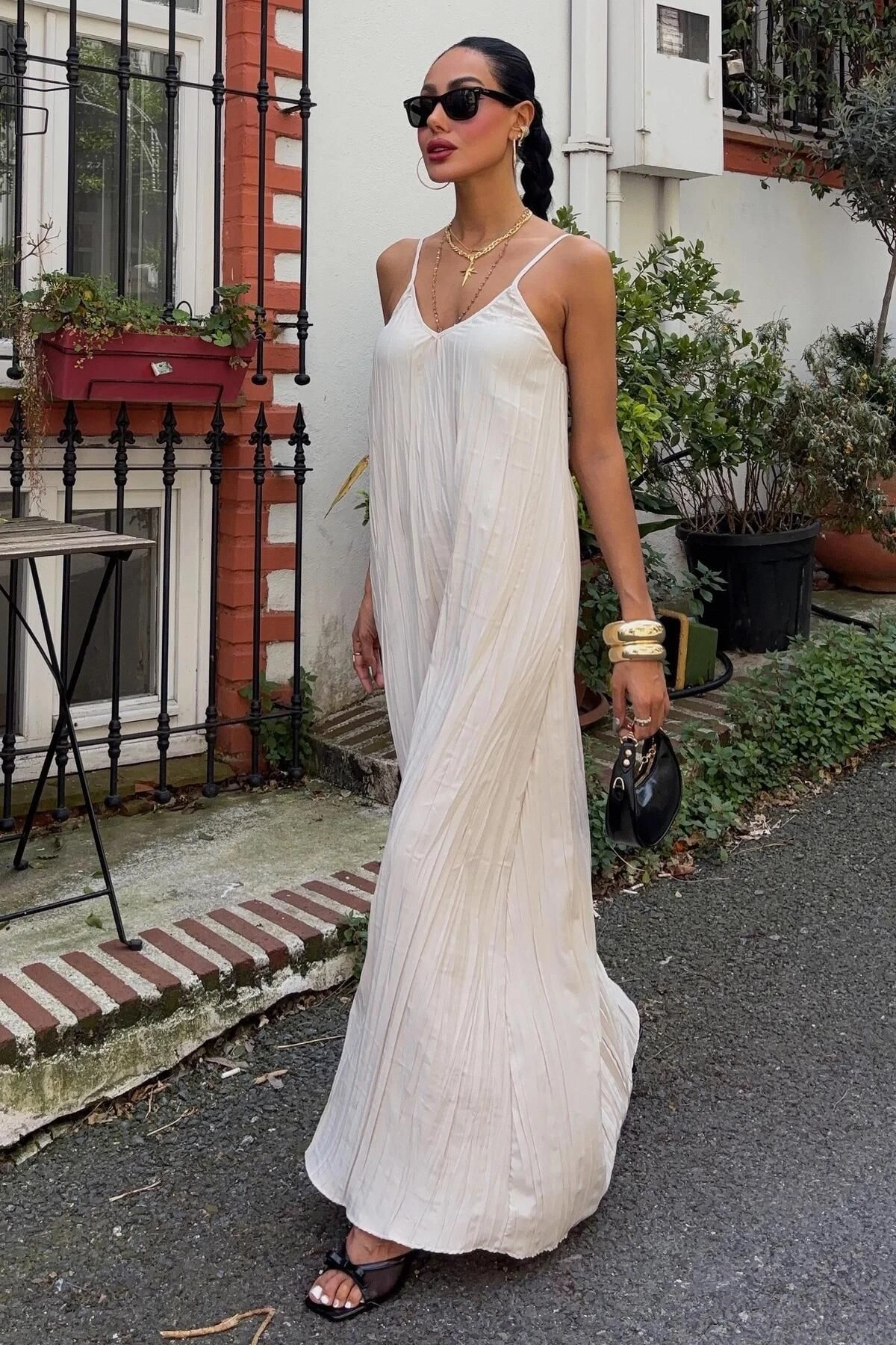 Kadın Taş Kraş Askılı Maxi V Yaka Elbise