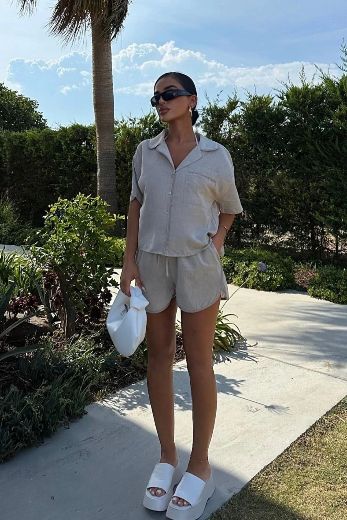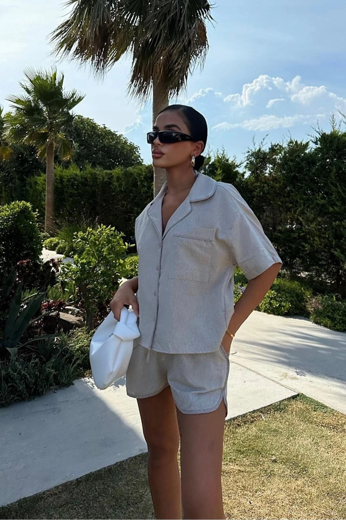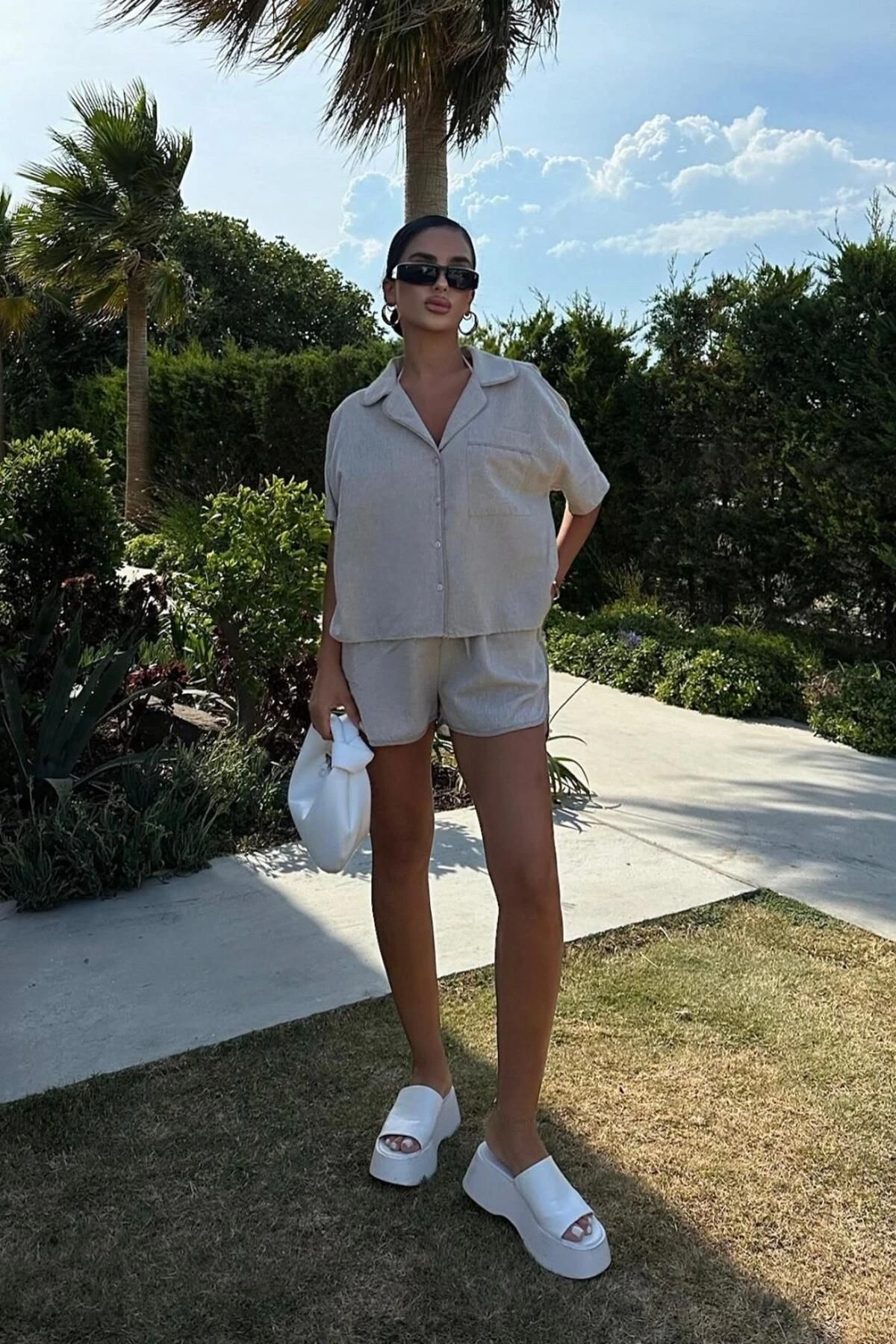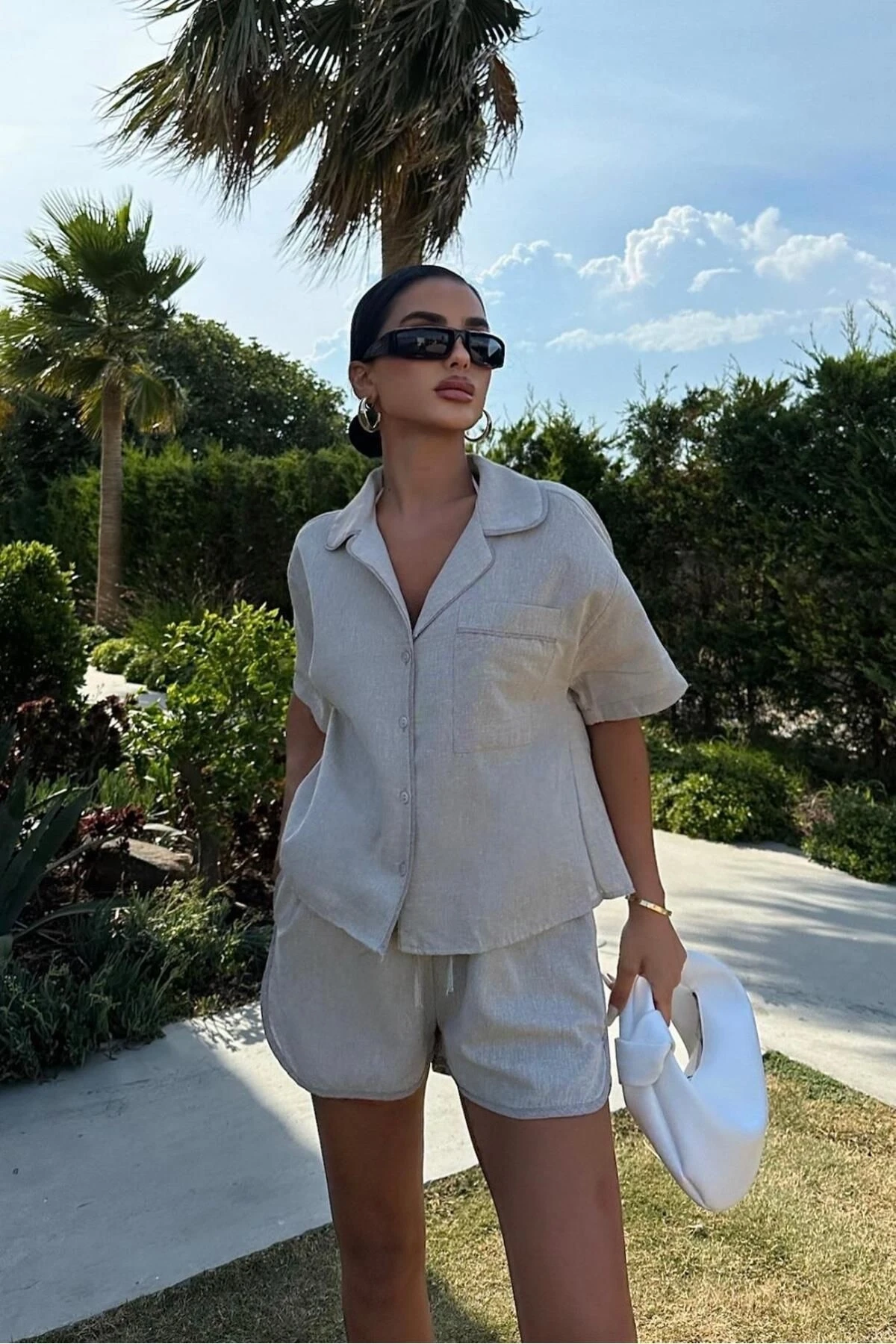 Kadın Taş Kruvaze Cotton Kısa Kol Dokuma İkili Takım