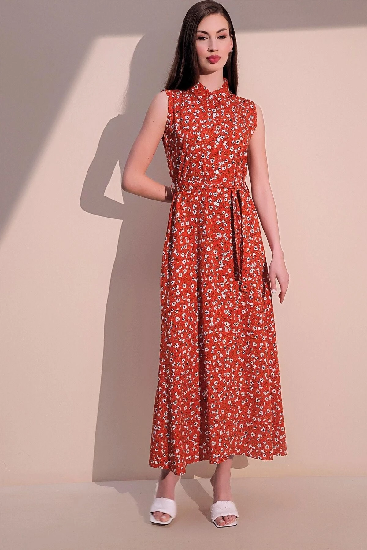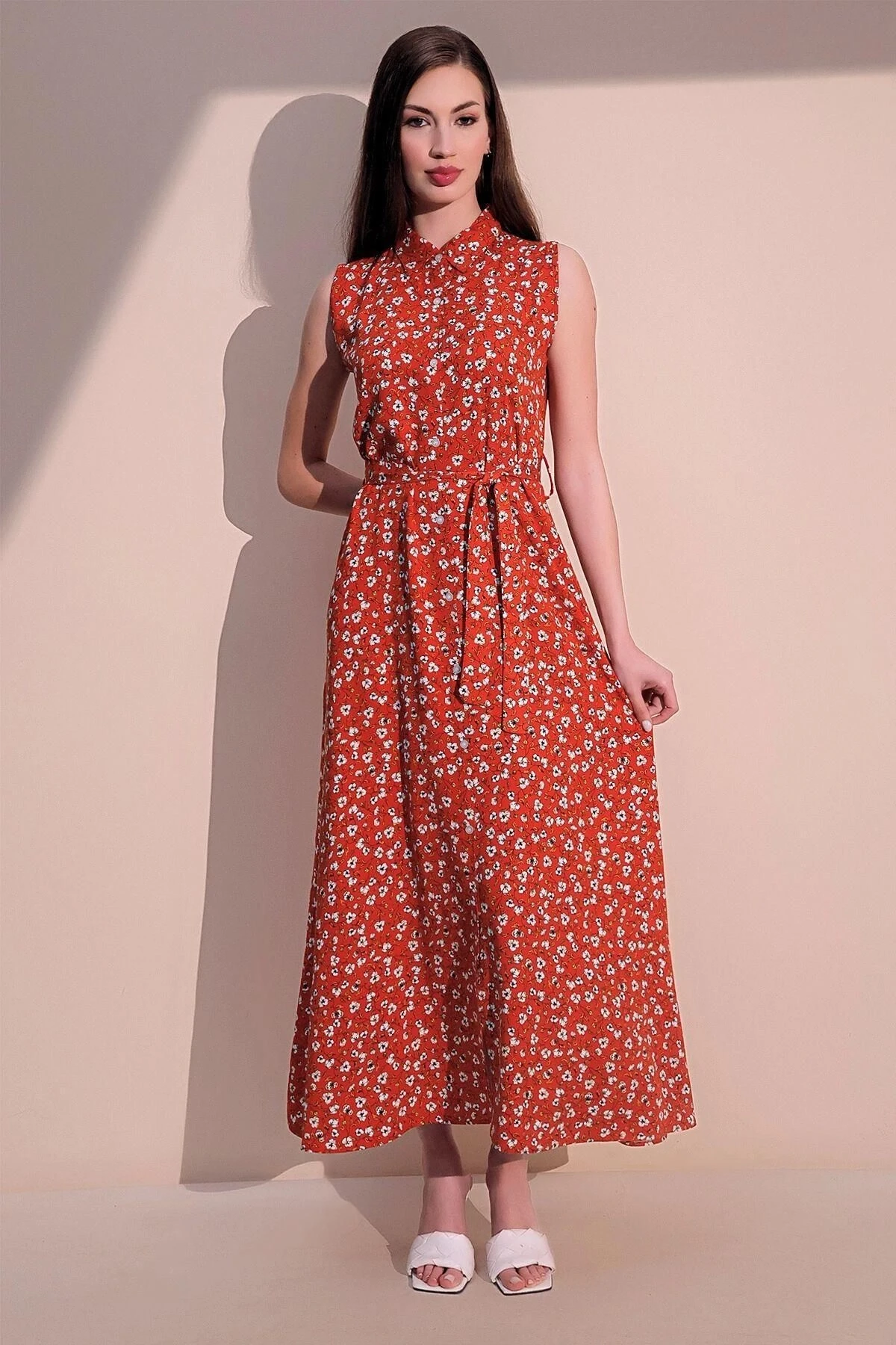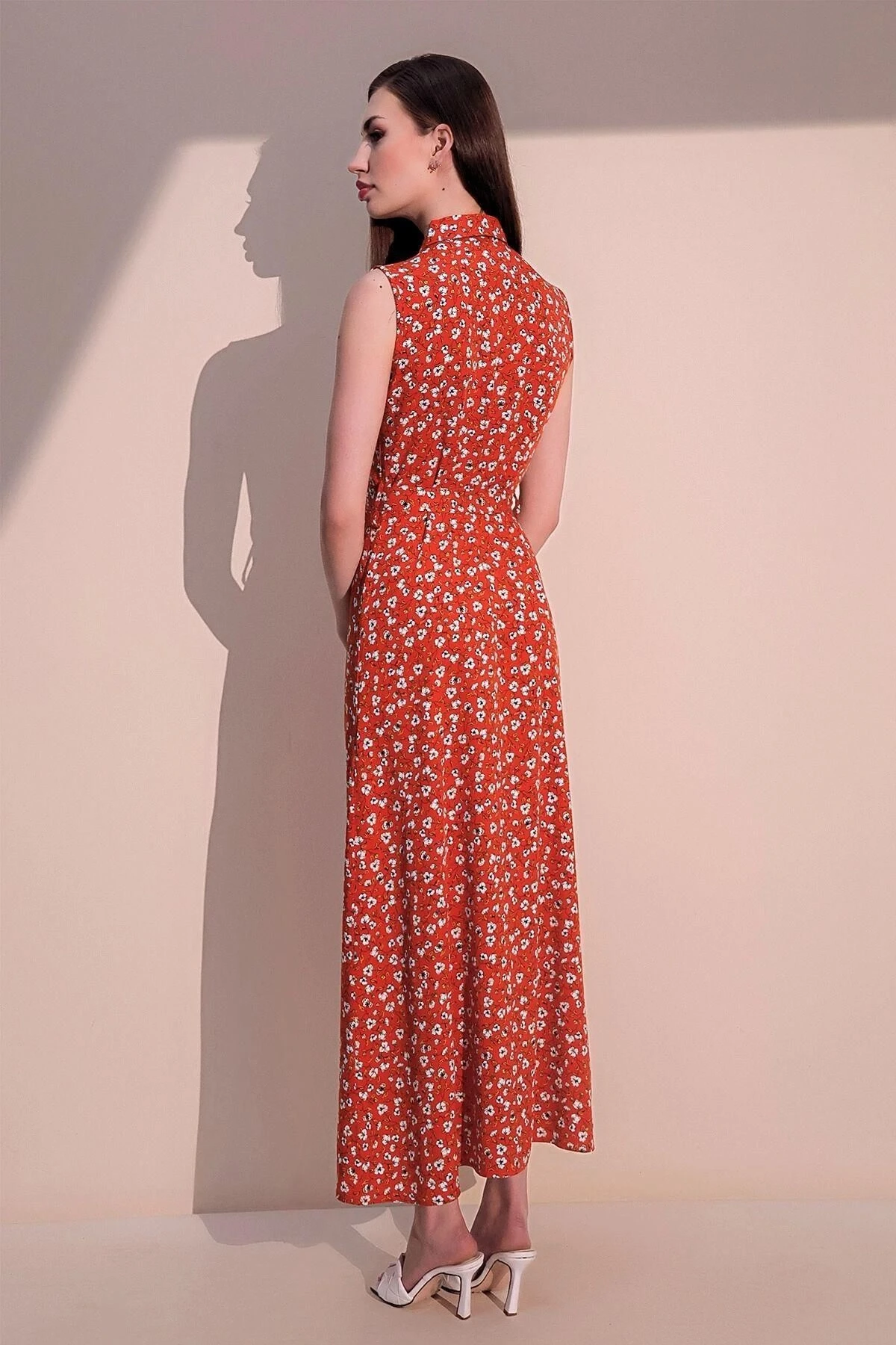 Bu modern tarzda tasarlanmış turuncu renk çizgili uzun gömlek elbise, şıklığı ve rahatlığı bir araya getiriyor. ; Kendinden kemerli tasarımıyla vücut hatlarınıza hoş bir vurgu yaparken, kolsuz yapısıyla da yaz aylarında serin ve ferah bir his sunuyor. ; Bu gömlek elbisenin kumaşı %100 viskozdan üretilmiştir, bu da hem hafif hem de yumuşak bir dokunuş sağlar. ; Viskoz, doğal bir elyaftan elde edilen sentetik bir kumaştır ve giysilere lüks bir görünüm katar. ; Ayrıca viskoz kumaş, nefes alabilen bir yapıya sahiptir, böylece gün boyu rahat hissetmenizi sağlar. ; Turuncu ve beyaz renkli çicekler, elbisenin tasarımında canlılık ve enerji katarken, modern bir görünüm sunar. ; Renk kalıbı, turuncunun canlılığıyla birlikte klasik ve şık bir tarzı birleştirir. ; Kendinden kemerli tasarım, elbiseye zarif bir siluet kazandırırken aynı zamanda belinizi vurgular. ; Bu detay, elbisenin sizi saran ve şekillendiren modern bir tarza sahip olmasını sağlar. ; Ayrıca kendi kemerini kullanmanız yerine tasarıma dahil olan kemer, kullanım kolaylığı sağlar ve tamamlanmış bir görünüm sunar. ; Bu kolsuz uzun gömlek elbise, rahatlığı ve şıklığı bir araya getirerek her gün ve özel etkinliklerde tercih edebileceğiniz bir parçadır. ; Özel tasarımı ve kaliteli kumaşıyla hem tarzınıza özgünlük katar hem de konforlu bir giyim deneyimi sunar.;
