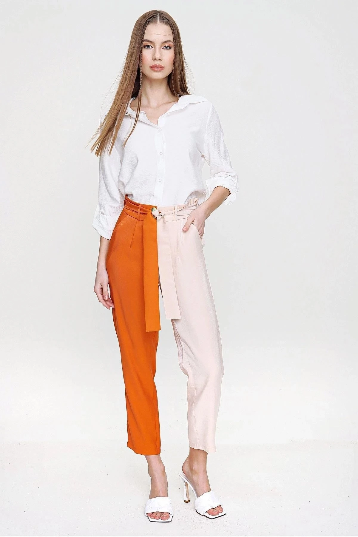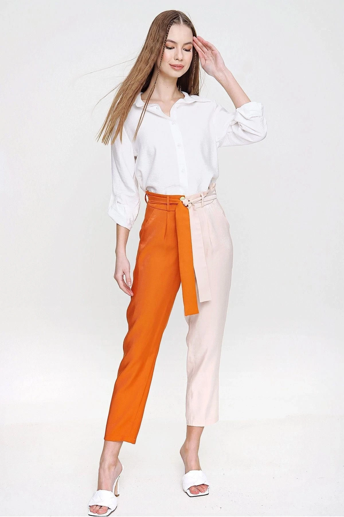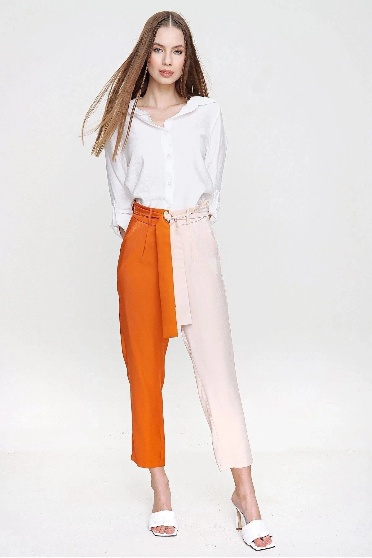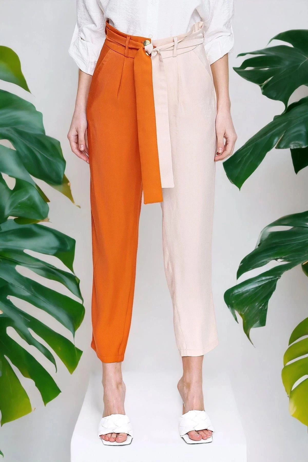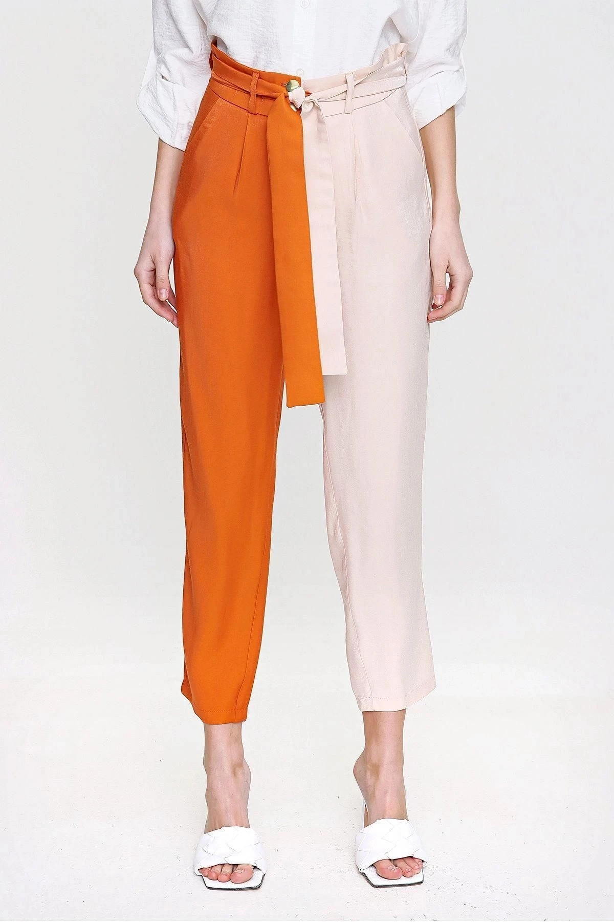 Bu turuncu renkli, parlak ve kaliteli kumaştan yapılmış Color Block kemerli pantolon, tarzınıza canlılık katmak için mükemmel bir seçenektir.; Pantolonun kumaş içeriği %60 polyester ve %40 pamuk karışımından oluşmaktadır, böylece dayanıklılık ve konfor bir araya gelir.; Bu pantolonun tasarımı, çekici renk bloklarıyla dikkat çeker.; Turuncu rengin enerjisini yansıtan pantolon, canlılık ve şıklığı bir arada sunar.; Renklerin dengeli bir şekilde birleştiği bu tasarım, sizi her ortamda fark edilebilir kılar.; Pantolonun kesimi, modern ve şık bir görünüm sağlamak üzere tasarlanmıştır.; Kemer detayı, belinizi vurgulayarak siluetinizi şekillendirir ve pantolona şık bir dokunuş katar.; Bu detay, stilinizi öne çıkarmanızı sağlar.; Kumaş kalitesi bu pantolonun en önemli özelliklerinden biridir.; %60 polyester, dayanıklılık ve kolay bakım sağlarken, %40 pamuk yumuşaklık ve nefes alabilirlik sunar.; Bu mükemmel kombinasyon, uzun süre dayanıklılık ve rahatlık sağlar.; Bu turuncu renkli Color Block kemerli pantolon, stilinize canlılık, şıklık ve kalite katmak için ideal bir seçimdir.; Herhangi bir sosyal veya resmi etkinlikte göz kamaştırıcı bir görünüm elde etmek istiyorsanız, bu pantolon sizin için mükemmel bir seçenek olacaktır.