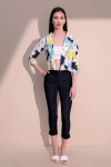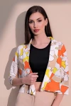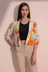 Kadın Turuncu Şık Desenli Poplin Crop Ceket