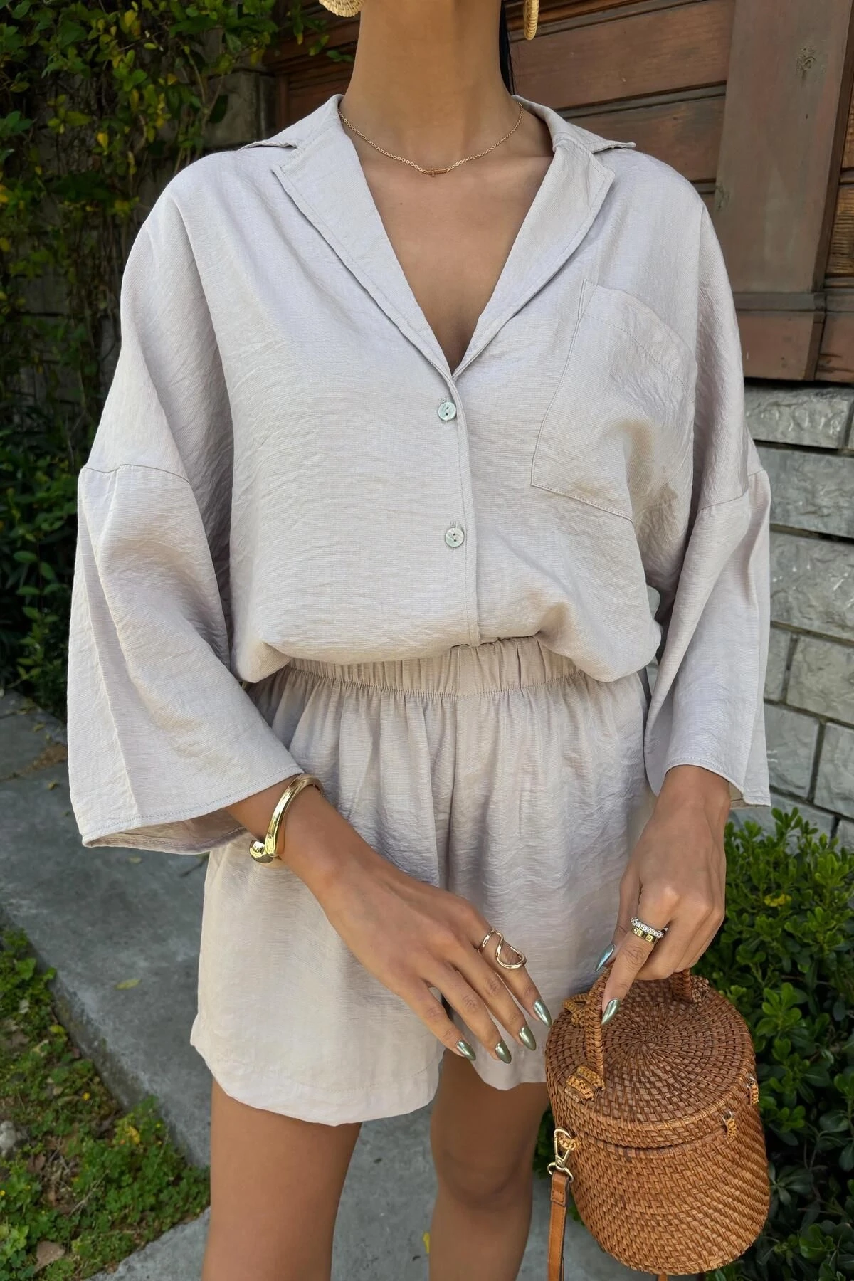 Kadın Vizon Ayrobin Kısa Kollu Şortlu Takım