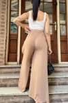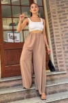 Kadın Vızon Beli Lastikli,Cepli, Bol Paça, Salaş Krep Pantolon - Tesettüre Uygun