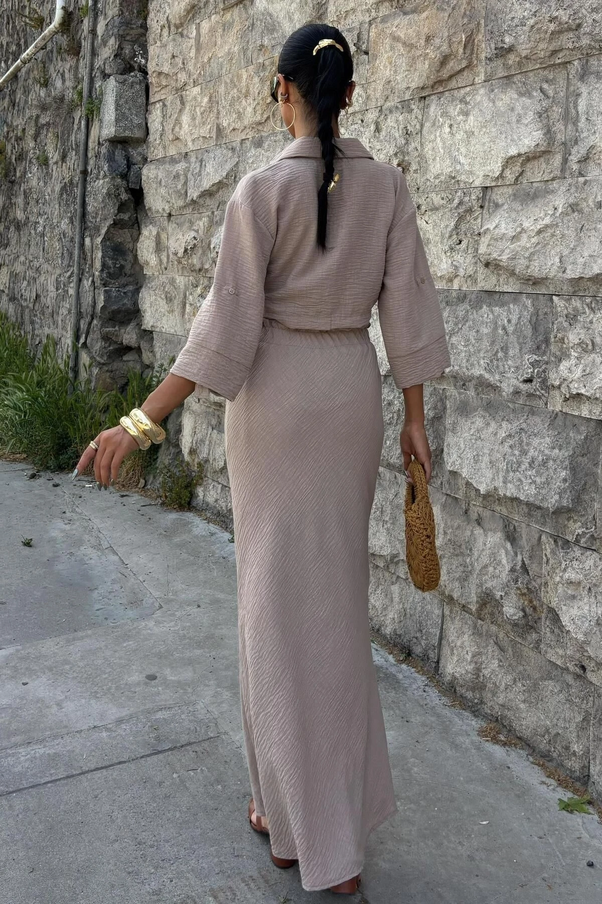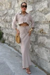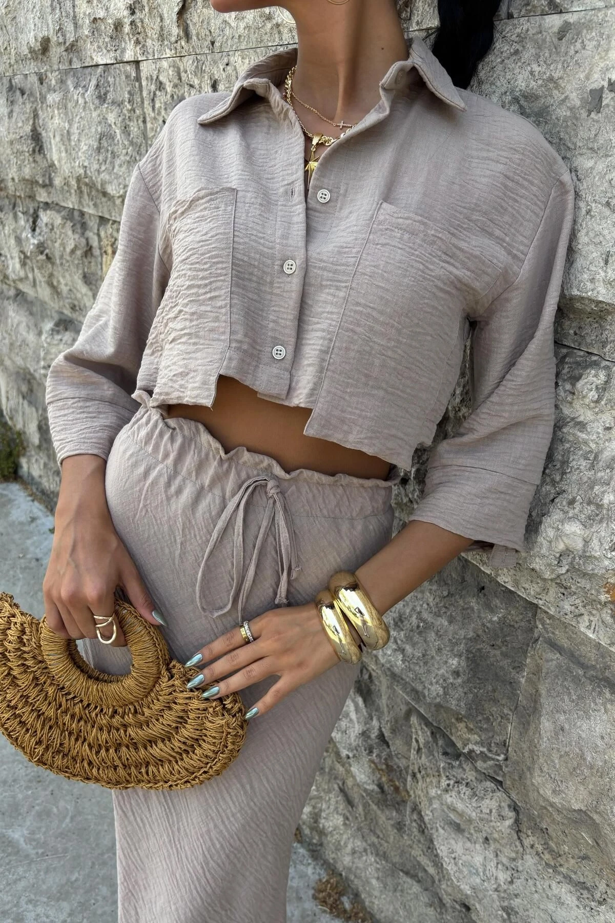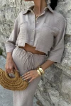 Kadın Vizon Keten Uzun Düz İkili Takım