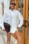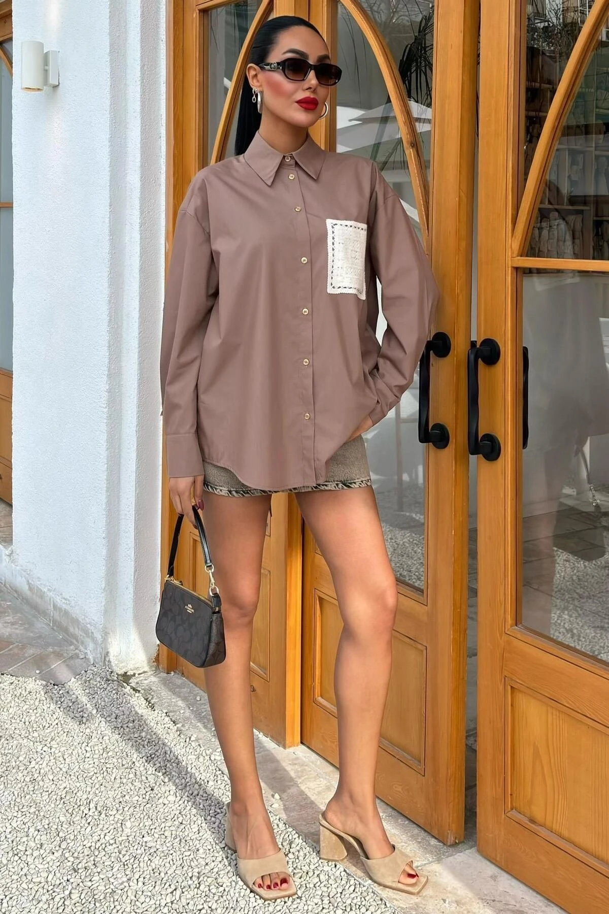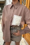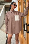 Kadın Vizon Polyester Cepli Uzun Dokuma Gömlek