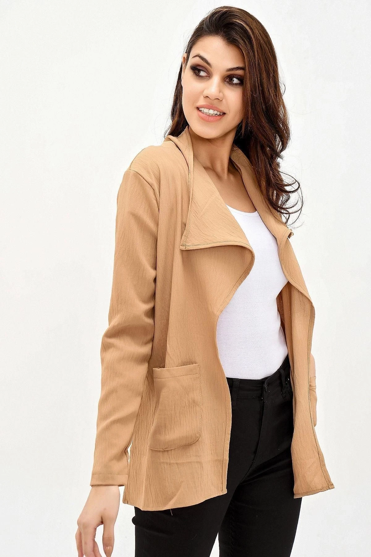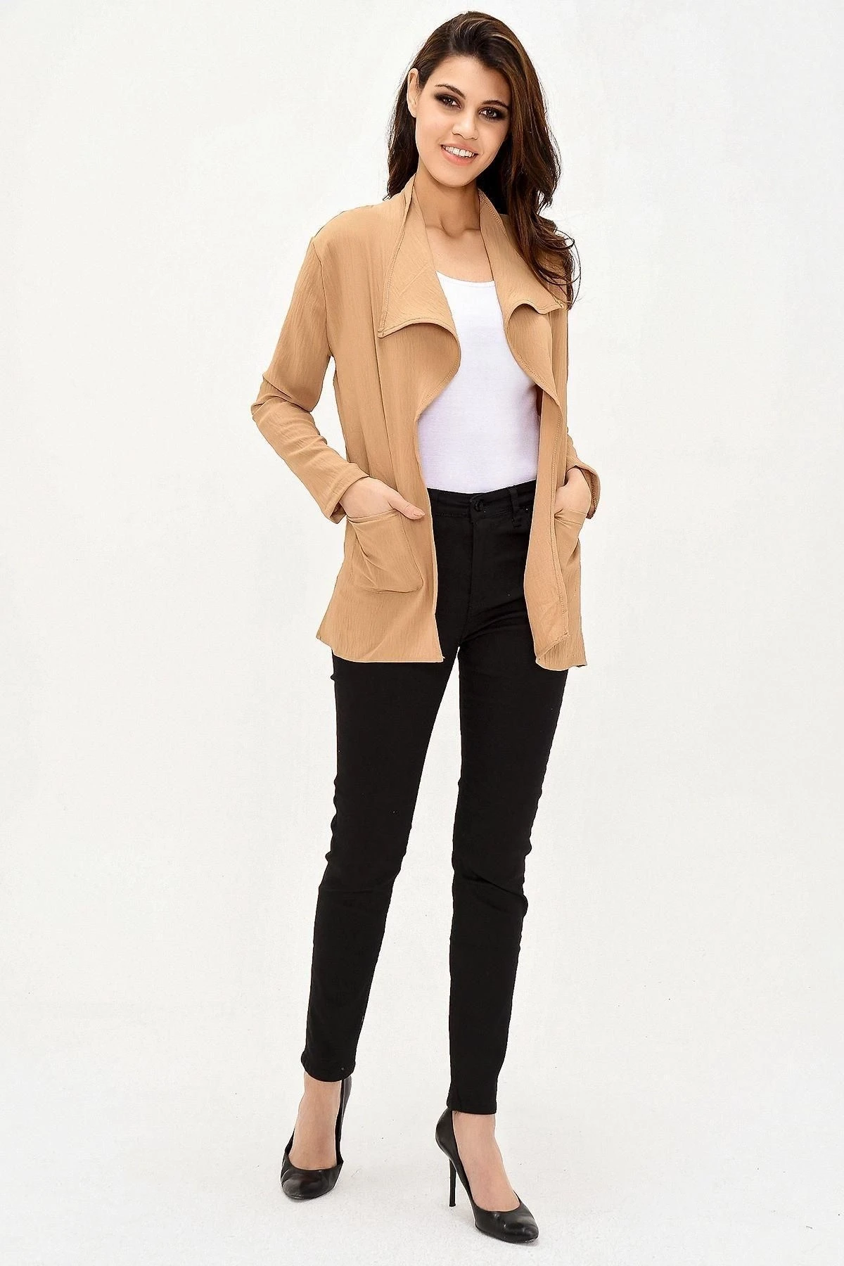 Kadın Vizon Şal Yaka, Uzun Kol Cep Detaylı, Regular Kesim Ceket Standart Boy - Tesettüre Uygun