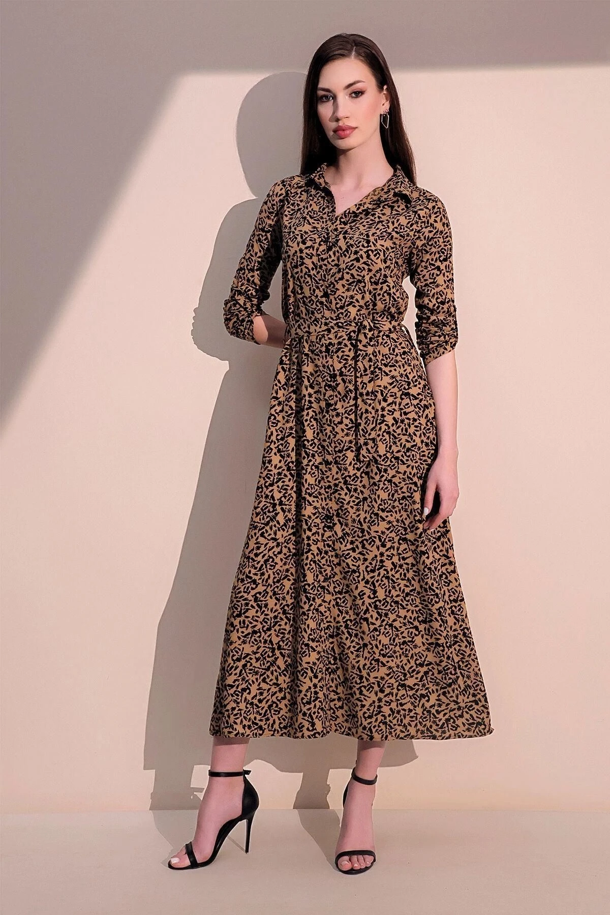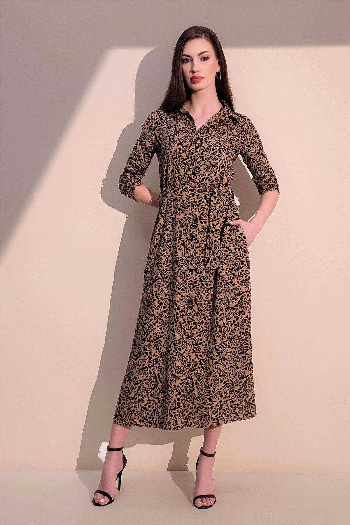 Bu Vizon Renk Uzun Kol Yeni Tarz Desen Kendinden Kemerli Kilos Uzun Gömlek Elbise, tesettür giyim için mükemmel bir seçenektir.; Ürünün kumaş içeriği %60 viskon ve %40 polyesterden oluşur, bu da hem konforlu hem de dayanıklı bir elbise sunar.; Elbisenin vizon rengi, şıklığı ve zarafeti ile öne çıkar.; Bu koyu renk, herhangi bir mevsimde giymek için idealdir ve farklı durumlar için uygun bir seçenek sunar.; Elbisenin kalıbı, vücuda tam oturan ve güzel bir şekilde şekillendiren bir tasarıma sahiptir.; Uzun kollu olarak tasarlanan bu elbise, kolları kapatmak ve daha rahat bir kullanım sağlamak için idealdir.; Aynı zamanda kilolu kesimiyle, bedeninizi hoş bir şekilde kucaklar ve sizi zarif gösterir.; Bu elbisenin üzerinde çarpıcı bir tarz deseni bulunur.; Desen, modern ve şık bir görünüm sağlamak için dikkatle seçilmiştir.; Kendinden kemerli olması da, belinizi vurgulayarak elbisenin siluetini daha da güçlendirir.; Bu tesettüre uygun elbise, hem günlük giyimde hem de özel etkinliklerde rahatlıkla tercih edilebilir.; Yumuşak ve nefes alabilen viskon-polyester kumaşından yapıldığı için uzun süreli kullanımda rahatlık sağlar.; Bu elbise, hem tarzınıza hem de dinamik yaşam tarzınıza uygun bir seçenektir.; Vizon rengi, modern kalıbı ve şık deseniyle dikkat çeken bu elbiseyi, gardırobunuzun vazgeçilmez bir parçası yapabilirsiniz.