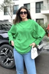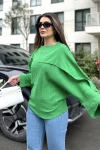Kadın yeşil Duble Geniş Manşet, Yarasa Kol, Süs Cep Detaylı, Salaş Bluz