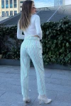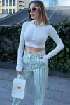 Kadın Yeşil & Ekru Çizgili, Yüksel Bel, Klasik Kesim, Boru Paça Pantolon