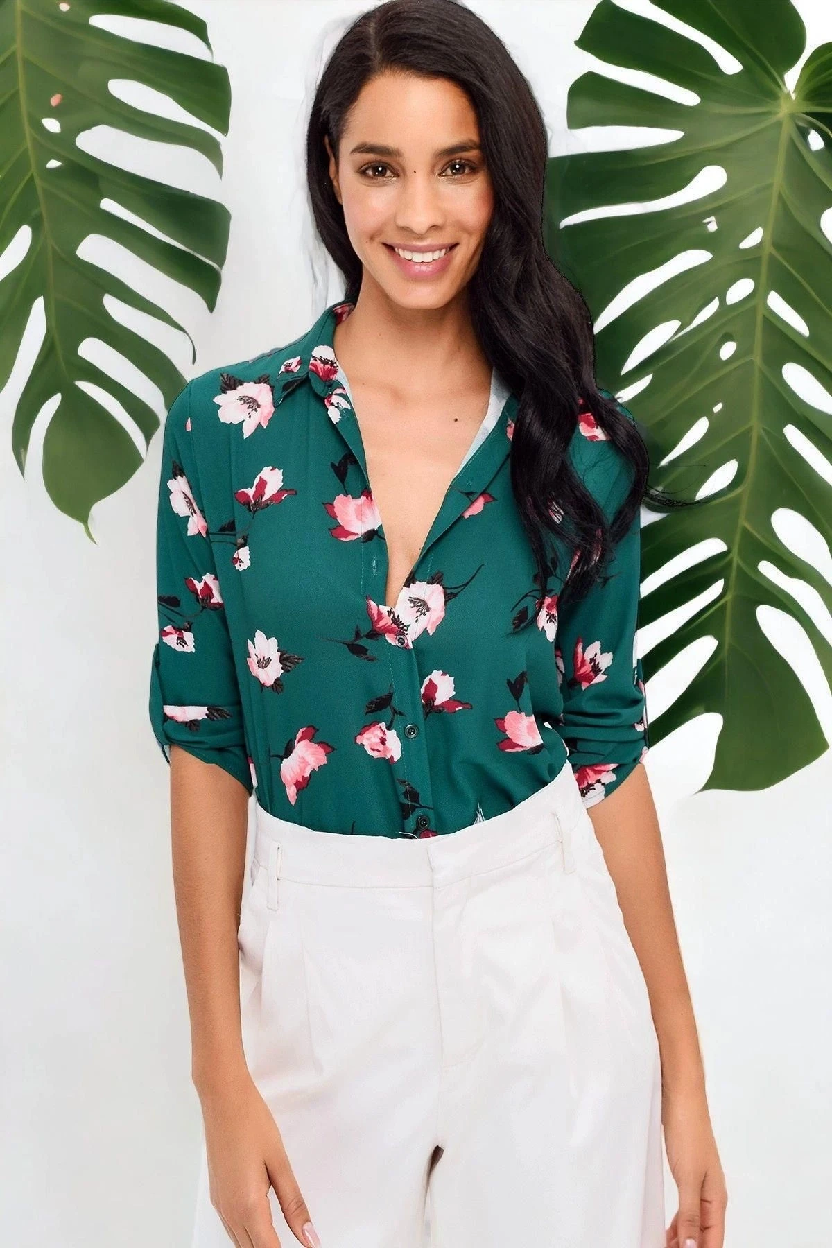Bu kaliteli üretim çiçek desenli krep klasik yaka truvakar kol gömlek, şık ve zarif bir seçenek sunuyor.; Kumaş içeriği %95 viskon ve %5 elastan ile mükemmel bir kombinasyon oluşturuyor.; Bu gömlek, kaliteli kumaşıyla uzun ömürlü kullanım sunar.; Viskon malzeme, yumuşak ve pürüzsüz dokusuyla cildinize hoş bir his sağlar ve gün boyu konforlu bir giyim deneyimi sunar.; Elastan ise gömleğin esnekliğini artırarak hareket özgürlüğü sunar ve kırışıklıkların oluşmasını engeller.; Yeşil renkli bu gömlek, canlı ve enerjik bir tarzı yansıtır.; Çiçek desenli tasarımı, zarafeti ve feminenliği ön plana çıkaran bir hava katıyor.; Çiçek motifleri, gömleğe doğal bir cazibe katarken, renkleri ise canlılık ve tazelik hissi verir.; Klasik yaka detayı, bu gömleği şık bir görünümle tamamlar.; Hem resmi hem de günlük stil için mükemmel bir seçenek olan klasik yaka, her türlü kombinle uyum sağlar.; Truvakar kol tasarımı, rahat bir duruş sergiler ve kolayca hareket etmenizi sağlar.; Bu gömlek, herhangi bir mevsimde giyilebilir ve farklı durumlara uyum sağlar.; İş hayatında, özel etkinliklerde veya günlük hayatta şık ve zarif görünmek isteyenler için ideal bir tercihtir.; Bu ürünle kaliteli ve şık bir tarz yakalayabilirsiniz.; Krep kumaşıyla konforlu bir giyim deneyimi sunarken, yeşil renkli çiçek deseniyle tarzınızı ön plana çıkarabilirsiniz.; Klasik yaka ve truvakar kol detayları ise gömleği tamamlar ve sizin özgün stilinizi yansıtmanıza olanak tanır.