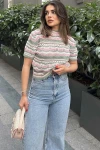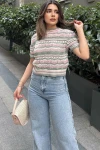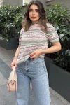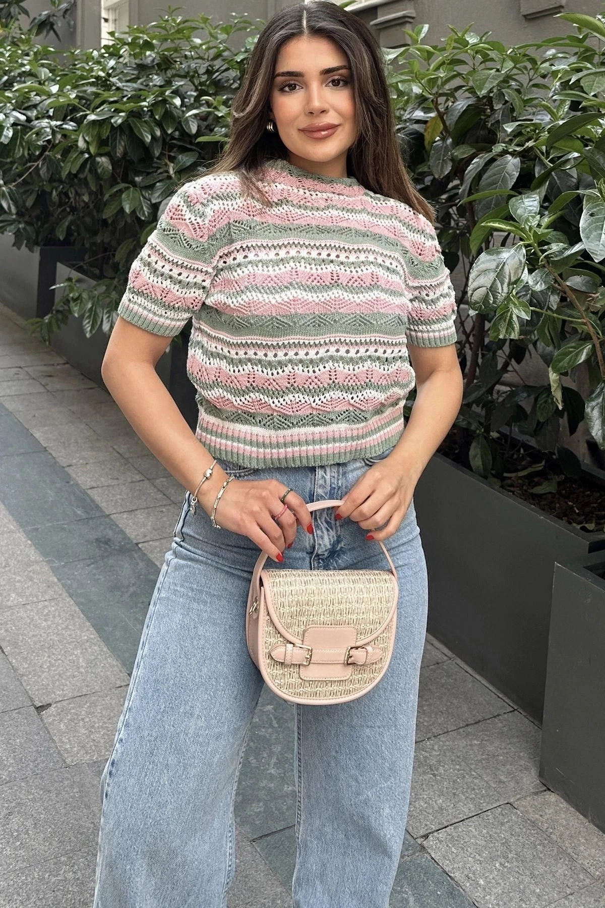 Kadın Yeşil Kısa Kol, Terletmez, Salaş Kalıp, Triko Örme Bluz