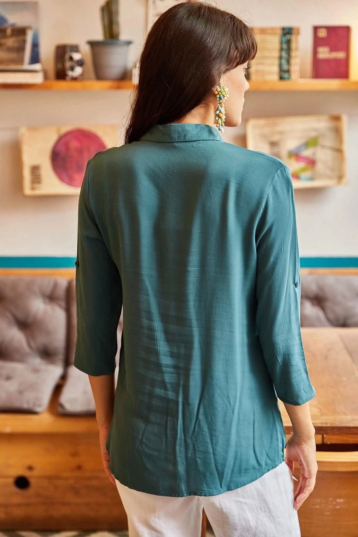 Bu özel gömlek, klasik bir tarzın modern bir yorumuyla tasarlandı.; Yeşil rengiyle dikkat çeken bu gömlek, her mevsim ve her durum için mükemmel bir seçenek.; Kumaş içeriği %100 visconeden oluşan bu gömlek, yüksek kaliteli ve rahat bir dokunuş sunar.; Viscone, doğal elyafların özelliklerini taşıyan bir sentetik malzemedir.; Bu sayede, gömleği giydiğinizde yumuşaklık, nefes alabilirlik ve dayanıklılık gibi avantajlardan faydalanırsınız.; Klasik yaka tasarımı, şıklığı ve zarafeti bir araya getirirken, truvakar kol detayları gömleğe modern bir dokunuş katıyor.; Basic ve regular kesimi, her bedene uyum sağlar ve rahat bir kullanım sunar.; Standart boyu ise herkes için ideal bir uzunlukta tasarlandı.; Bu gömleği gardırobunuza ekleyerek her gün şık ve tarz sahibi görünebilirsiniz.; İster iş toplantılarına giderken, ister özel davetlere katılırken, bu gömlek size kendinizi özgüvenle ifade etme imkanı sunar.; Kendinizi lüks ve konforlu bir hisle saracak olan bu gömleği, farklı kombinasyonlarla kullanabilirsiniz.; Pantolonlarınızla veya eteklerinizle mükemmel bir uyum sağlayacak ve tarzınızı tamamlayacaktır.; Yeşil Renk Klasik Yaka, Truvakar Kol, Basic, Regular Kesim, Standart Boy Gömlek, sizin için şıklık, konfor ve tarzın mükemmel bir kombinasyonunu sunuyor.; Bu gömleği alarak gardırobunuzu yenileyin ve kendinizi her zaman özgüvenli ve şık hissedin.
