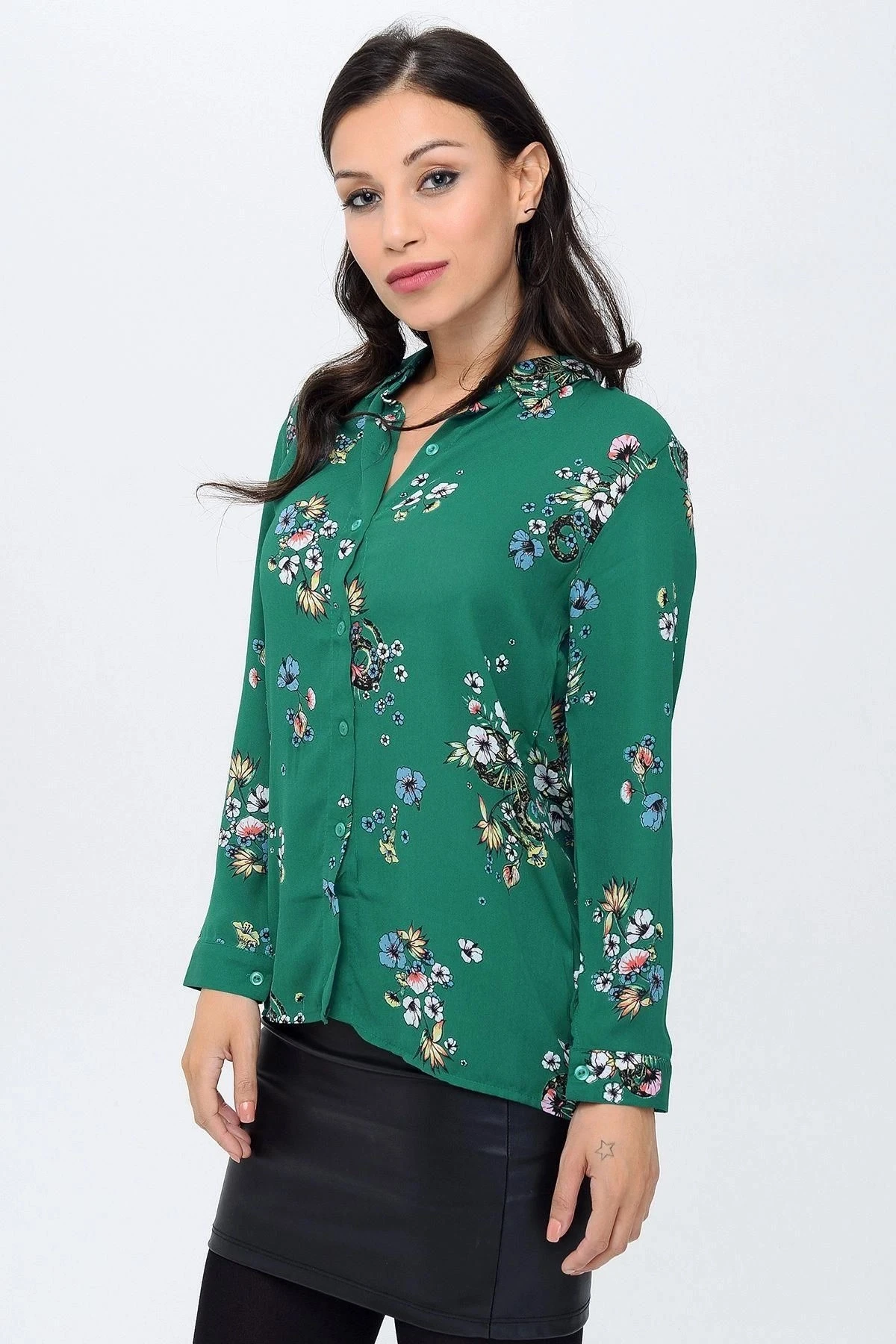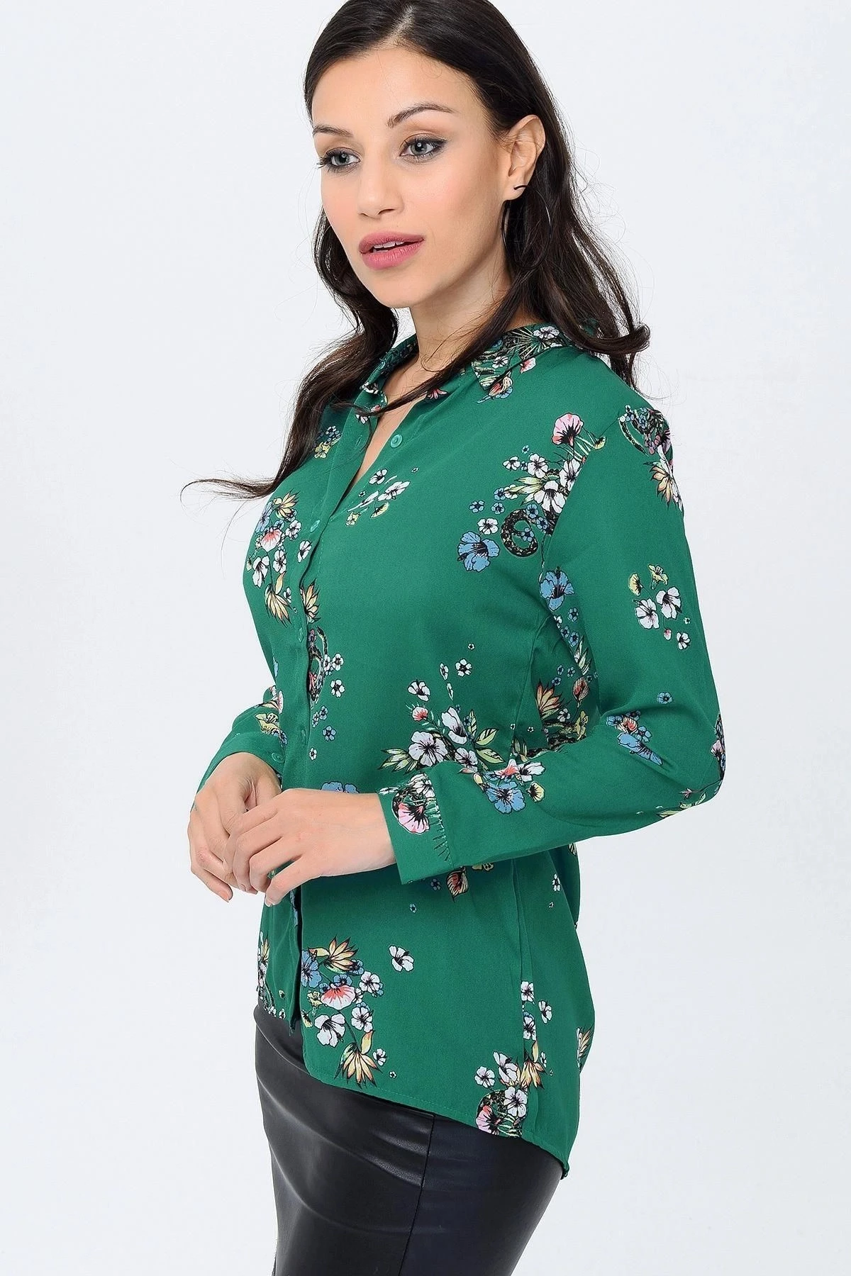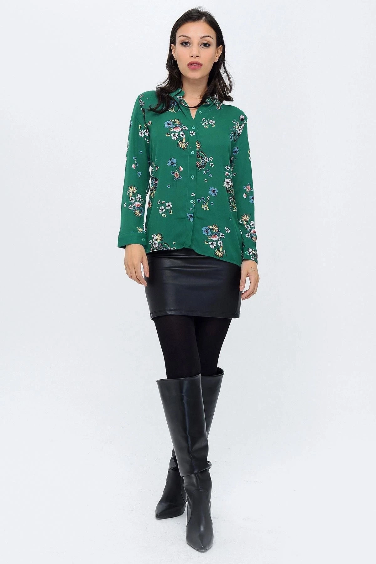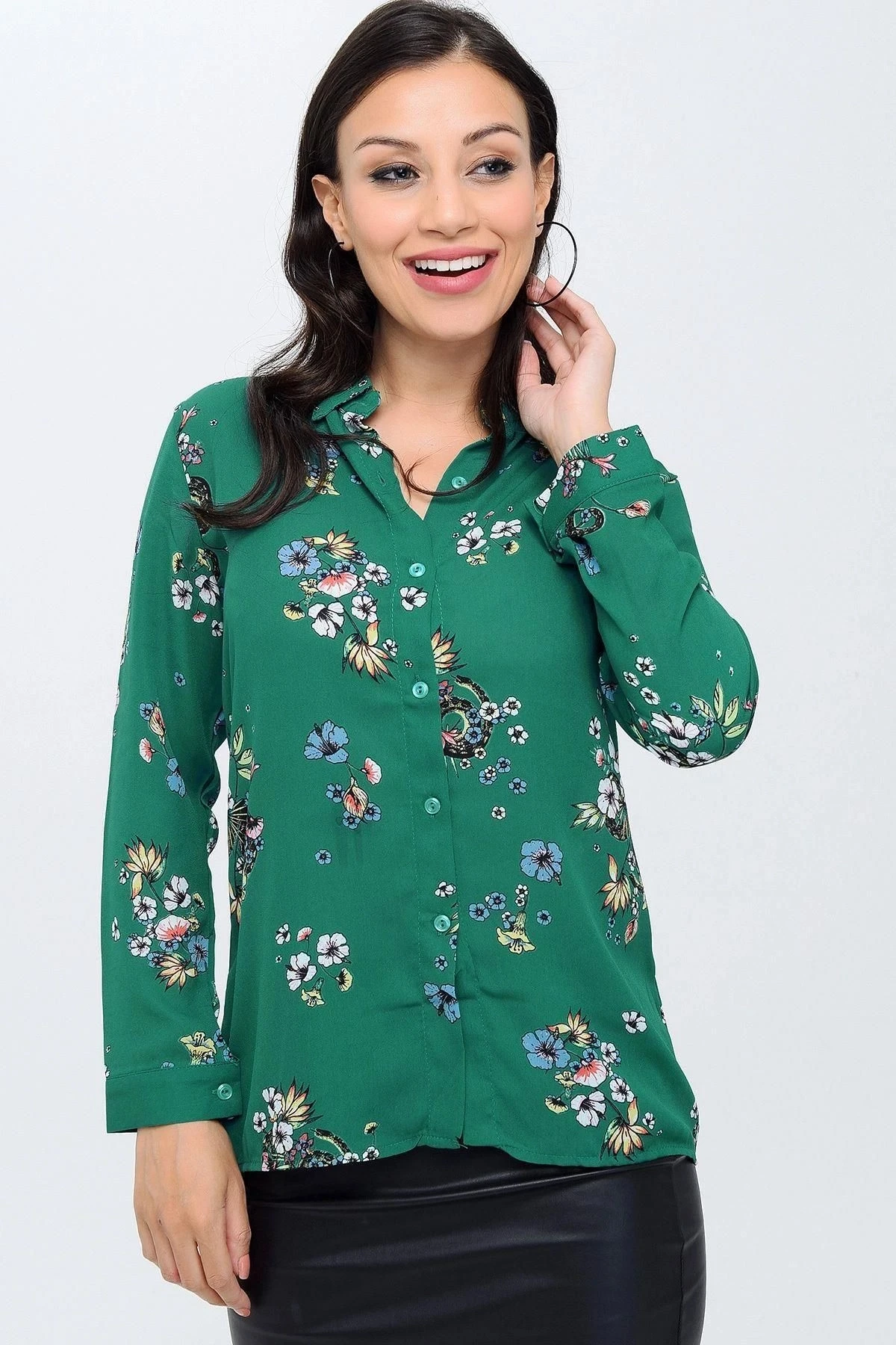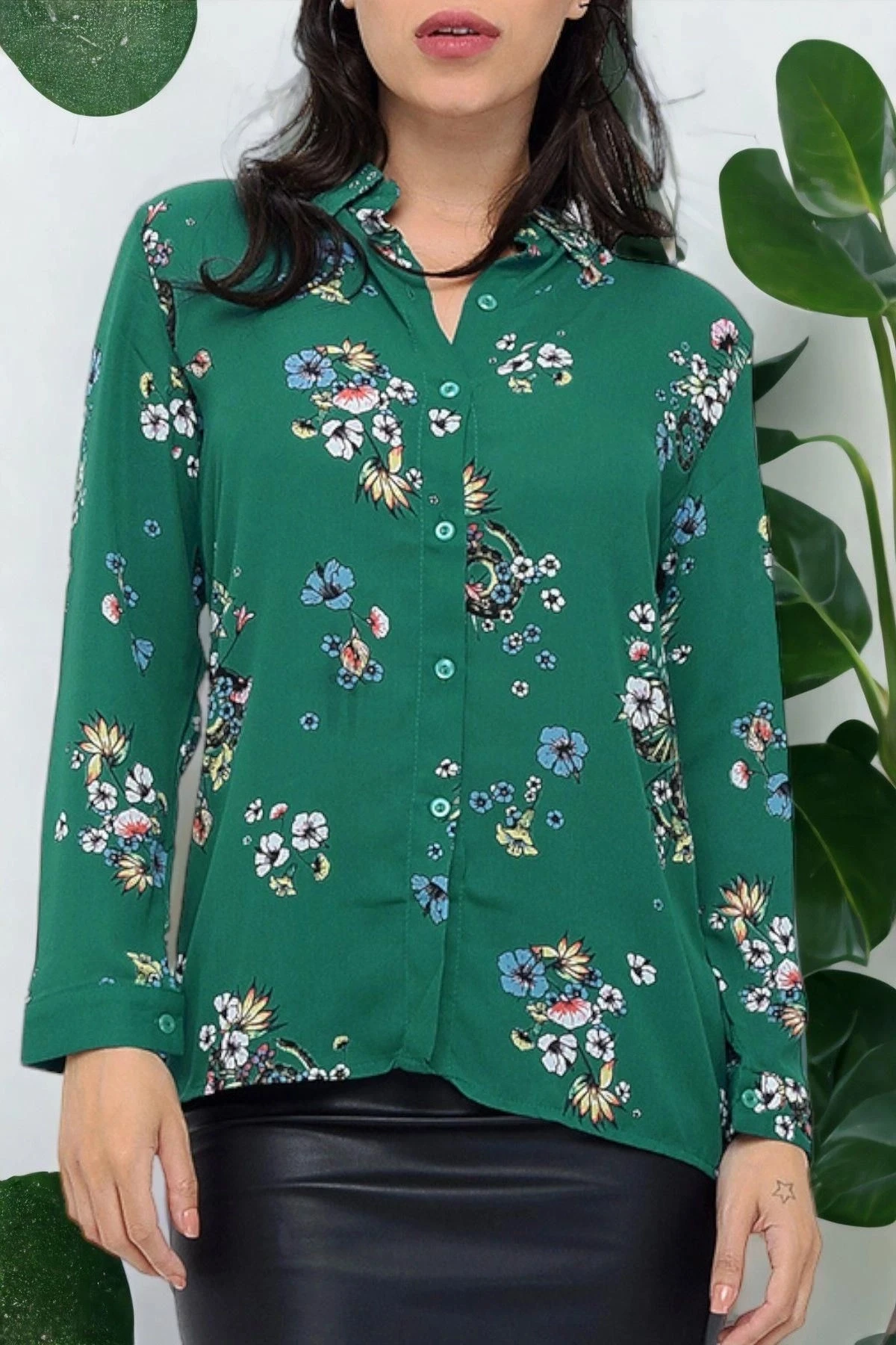 Bu kısa süreliğine Gömlek, %100 viskon kumaştan üretilmiştir, bu da ona yumuşaklık ve konfor sağlar.; Yeşil renk, her mevsime uygun bir canlılık ve tazelik katarken, çiçek desenleri gömleği daha cazip hale getirir.; Klasik yaka, gömleğe zarif bir görünüm katar ve herhangi bir stil ile mükemmel bir şekilde uyum sağlar.; Uzun kollu tasarım, soğuk havalarda ek bir koruma sağlarken, aynı zamanda şıklığından ödün vermez.; Bu gömlek, regular kesimiyle vücut hatlarınıza hoş bir şekilde oturur ve rahat bir uyum sağlar.; Standart boyu ise çoğu bedene uyum sağlamaktadır.; Bu nedenle, herhangi bir beden için ideal bir seçenek sunar.; Gömleğin kaliteli viskon kumaşı, dayanıklılığını artırırken, aynı zamanda nefes alabilme özelliği ile cildinizin rahatlıkla nefes almasına yardımcı olur.; Bu özellik, sıcak havalarda bile serin ve ferah kalmanızı sağlar.; Bu gömlek, çiçek desenleriyle birleştiğinde şık ve zarif bir görünüm elde etmenizi sağlar.; Bu desenler, gömleğin genel tarzına canlılık ve çekicilik katarken, size özgün bir tarz sunar.; Yeşil Renk Klasik Yaka, Uzun Kol, Çiçek Desenli, Regular Kesim, Standart Boy Gömlek, hem günlük hayatta hem de özel etkinliklerde şık ve rahat bir seçenek sunar.; İster kot pantolonlarla ister eteklerle kombinleyin, tarzınızı yansıtan benzersiz bir görünüm elde edin.