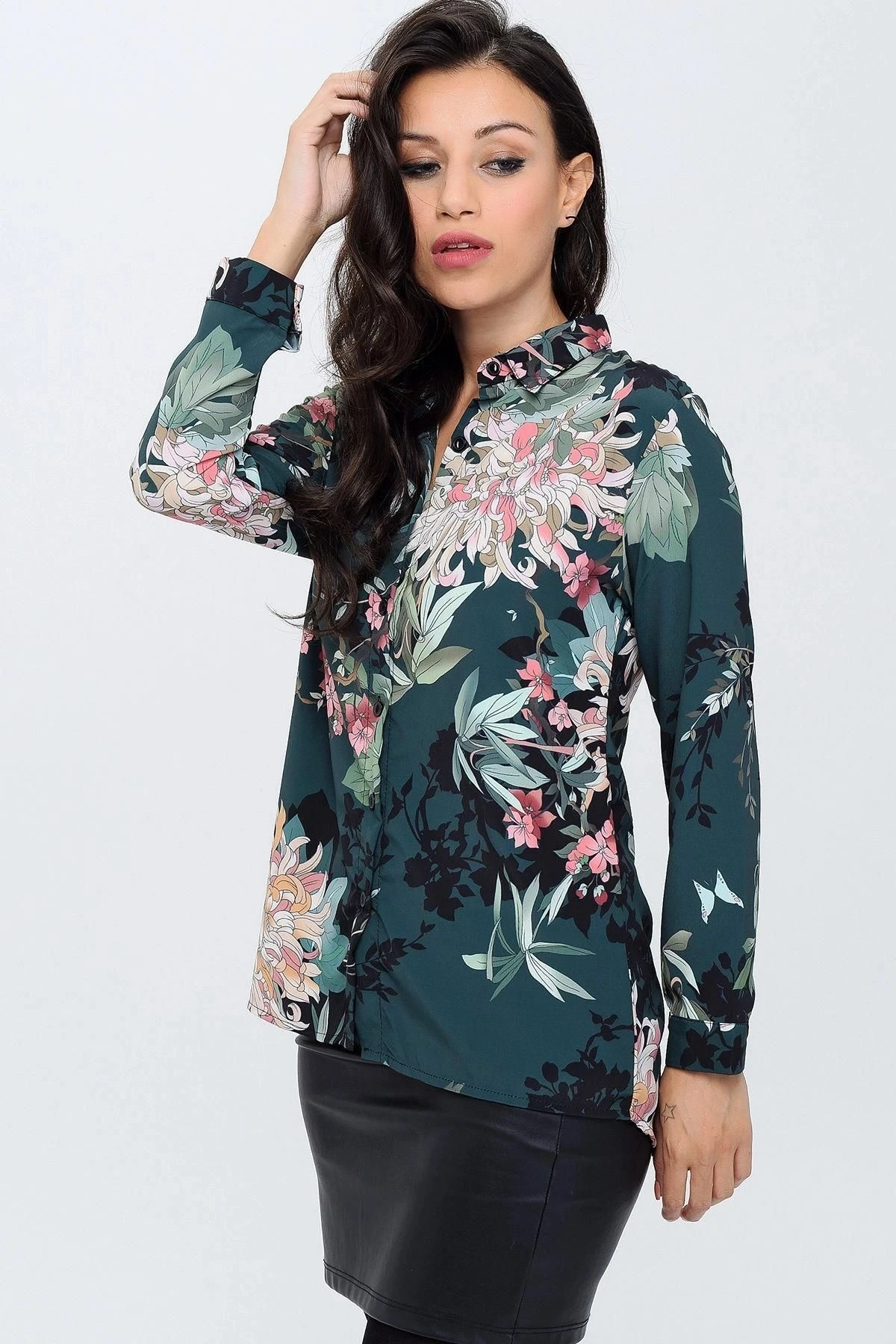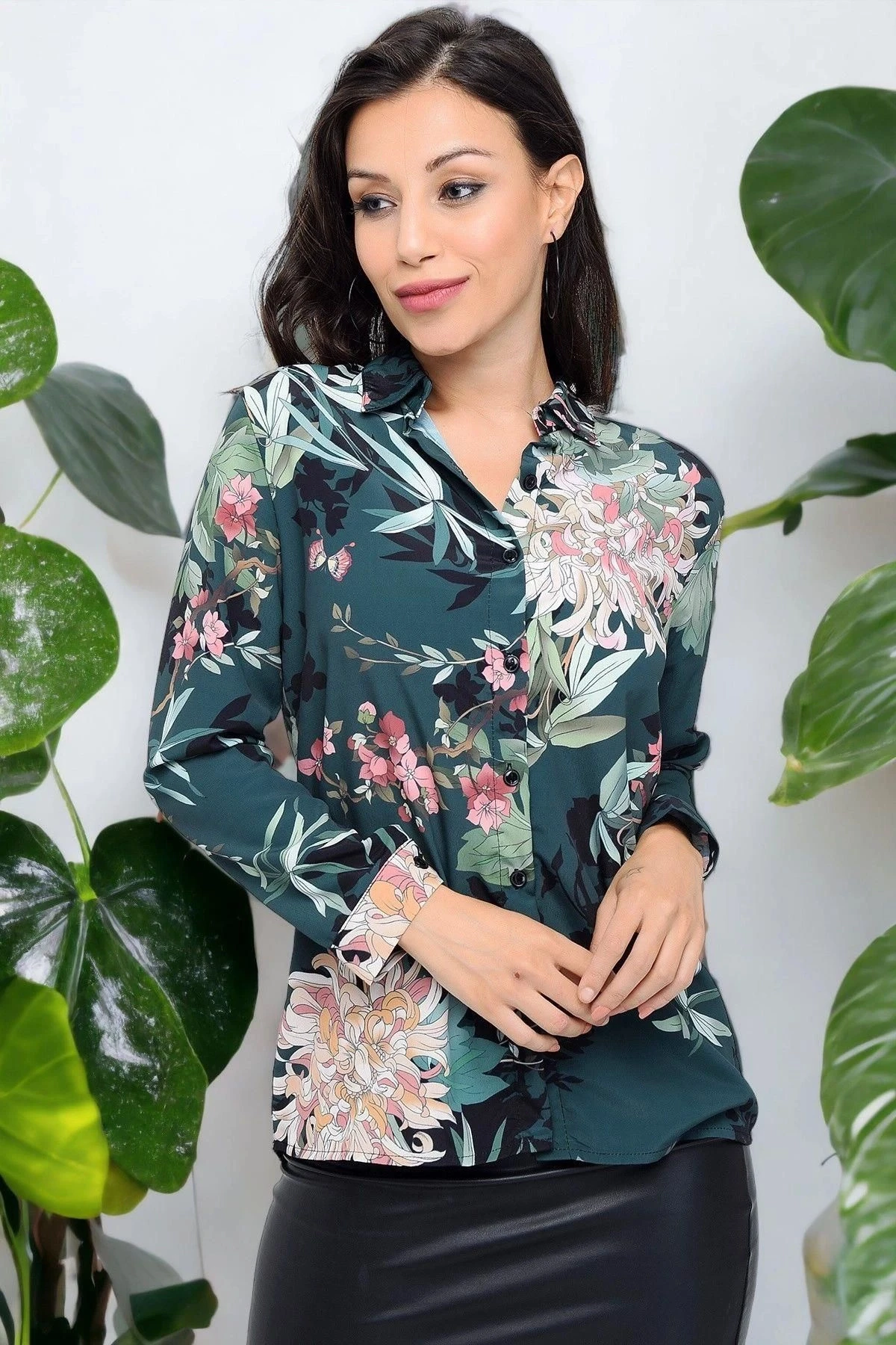 Bu zarif gömlek, şıklık arayanlar için mükemmel bir seçenektir.; Yeşil renkli tasarımı, enerjik ve canlı bir görünüm sağlarken, çiçek desenleriyle de doğanın güzelliklerini yansıtır.; Klasik yaka detayı, klasik ve sofistike bir tarzı temsil ederken, uzun kollu kesimi, daha fazla rahatlık ve sıcaklık sağlar.; Bu gömleğin kumaşı %100 viskozdan üretilmiştir.; Viskoz, doğal selülozik liflerden elde edilen yumuşak ve hafif bir malzemedir.; Bu nedenle, gömlek, giyildiğinde cilt üzerinde yumuşak bir dokunuş sunar ve gün boyu rahatlık sağlar.; Ayrıca, viskoz malzeme nefes alabilir özelliği sayesinde terlemeyi azaltır ve serin tutar.; Regular kesim, vücudu sıkmadan rahat bir oturuş sunar.; Standart boyuyla, herhangi bir bedene mükemmel uyum sağlar ve çeşitli kombinasyonlar için ideal bir parça haline gelir.; Bu gömleği iş ortamında, özel etkinliklerde veya günlük yaşamda gönül rahatlığıyla giyebilirsiniz.; Yeşil Renkli Çiçek Desenli Klasik Yaka Uzun Kol Gömlek, hem modern hem de klasik tarzı bir araya getirerek şıklığına öncelik verenler için mükemmel bir seçenektir.; Gelin, bu gömlek ile tarzınızı tamamlayın ve kendinizi özel hissedin!