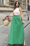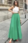 Kadın Yeşil Lastikli Yüksek Bel, A Kesim, Dökümlü Ve Salaş, Uzun Poplin Etek