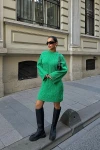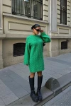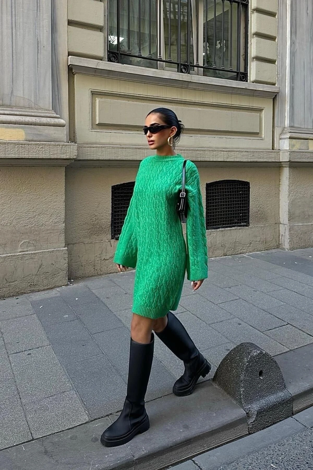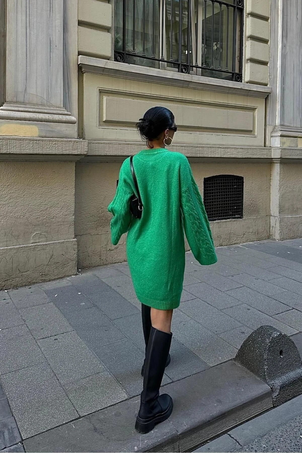 Kadın Yeşil Şardonlu Saç Örgü Oversize Elbise