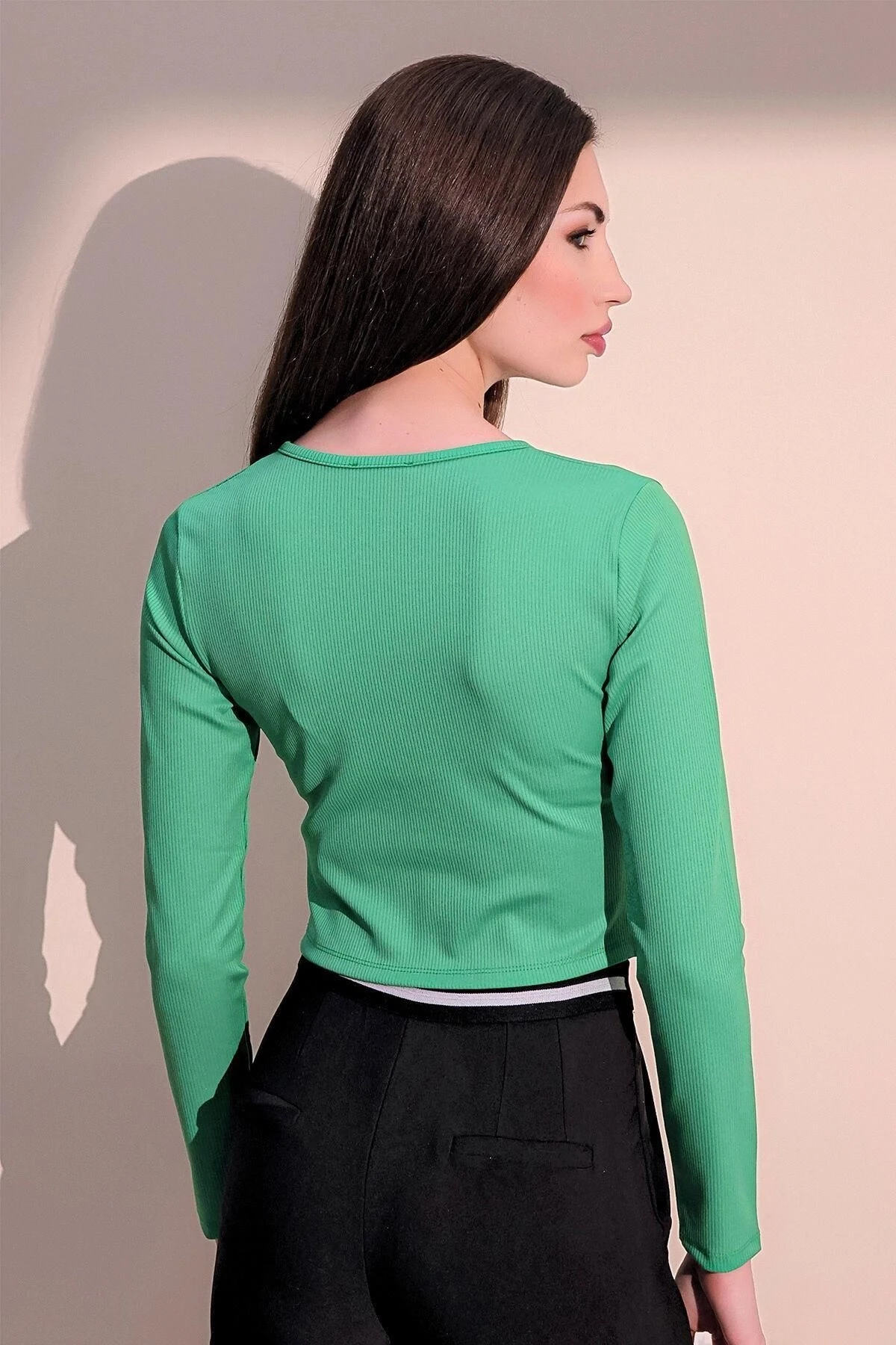 Kadın Yeşil Uzun Kol Yuvarlak Yaka Kaliteli Likralı Kumaş Fermuarlı Kaşkorse Crop Bluz