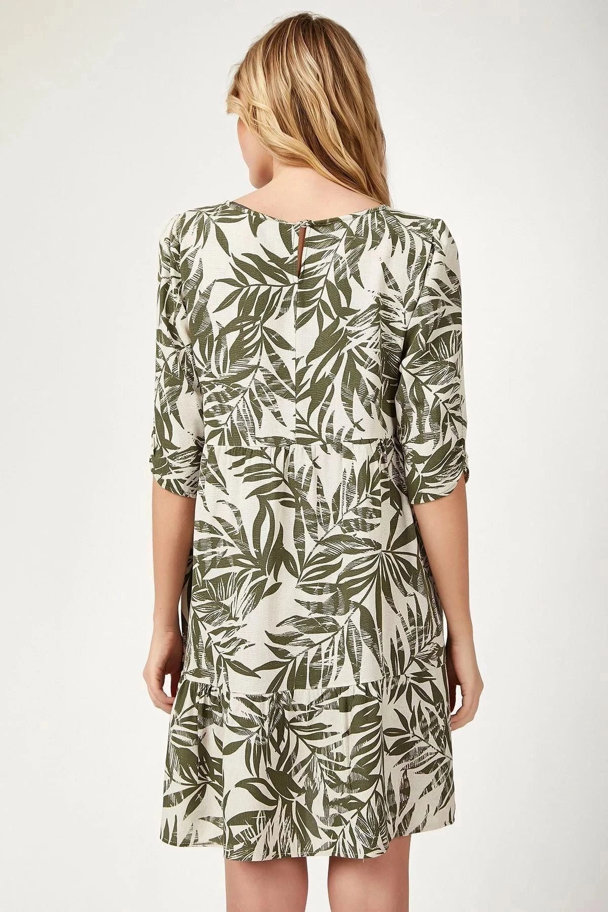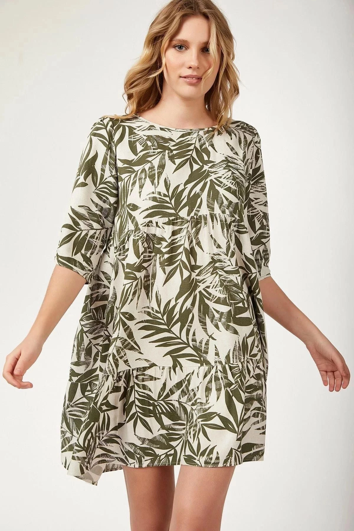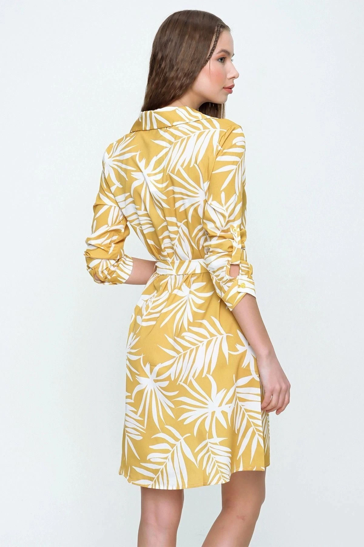 Bu şık ve modern elbise, sizin için mükemmel bir seçim olacak! Yeşil renkte ve yaprak desenli tasarımıyla dikkat çeken bu elbise, uzun kollu ve midi boy kesimiyle hem ofis hem de günlük kullanıma uygun bir seçenek sunuyor.; Elbisenin kumaşı %100 polyesterden yapılmıştır, bu da ona dayanıklılık ve uzun ömür sağlar.; Aynı zamanda, polyester kumaşın kolay bakım özelliği sayesinde elbisenin temizliği de oldukça pratiktir.; Yeşil rengi, doğayı yansıtan canlılık ve tazelik hissi verirken, yaprak desenleri elbiseye zarif bir dokunuş katıyor.; Bu tasarım, sizi şık ve çarpıcı bir şekilde öne çıkarırken, aynı zamanda zarafeti ve sofistike bir tarzı da temsil ediyor.; Regular kesimi sayesinde elbise, vücut hatlarınıza hoş bir şekilde oturur ve konforlu bir giyim deneyimi sunar.; Midi boyu, diz üstüne kadar uzanırken, hem profesyonel bir ofis görünümü hem de günlük şıklık için ideal bir uzunluk sunar.; Bu elbiseyi işe giderken veya özel etkinliklere katıldığınızda rahatlıkla tercih edebilirsiniz.; Stil sahibi bir görünüm elde etmek için üzerine uyumlu aksesuarlar ekleyebilir veya kendi tarzınıza göre kombinleyebilirsiniz.; Her bir detayı özenle düşünülen bu elbise, kalite ve tarzı bir araya getiriyor.; Kumaşının kalitesi, renklerinin kalıcılığı ve tasarımının estetiğiyle sizi memnun edecek bir seçim olduğunu garanti ediyoruz.; Bu yeşil renkli, yaprak desenli uzun kollu midi boy elbiseyle hem şıklığı yakalayacak hem de rahatlığınızı ön planda tutacaksınız.; Şimdi bu benzersiz ve zarif elbiseyi gardırobunuza ekleyin ve tarzınızı ön plana çıkarın!
