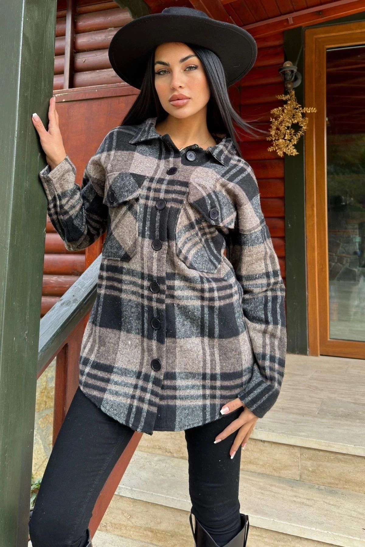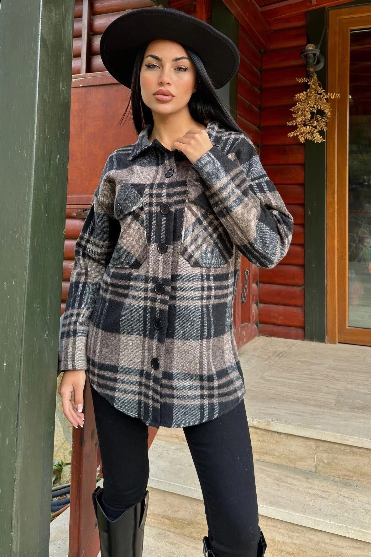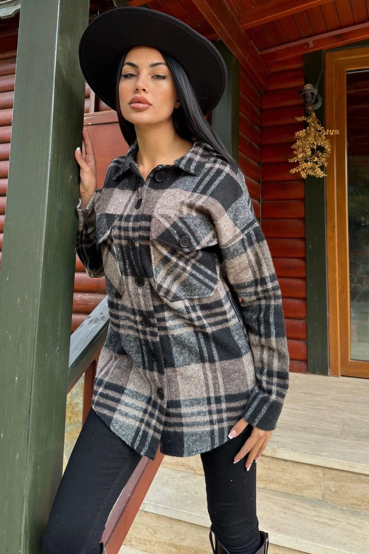Kahve Ekose Desenli, Yumuşak Dokulu, Relax Fit, Oduncu Gömlek