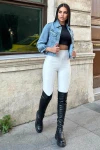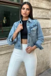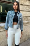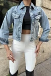 Kar Yıkama Düğmeli, Cepli, Kısa Denim Kot Ceket