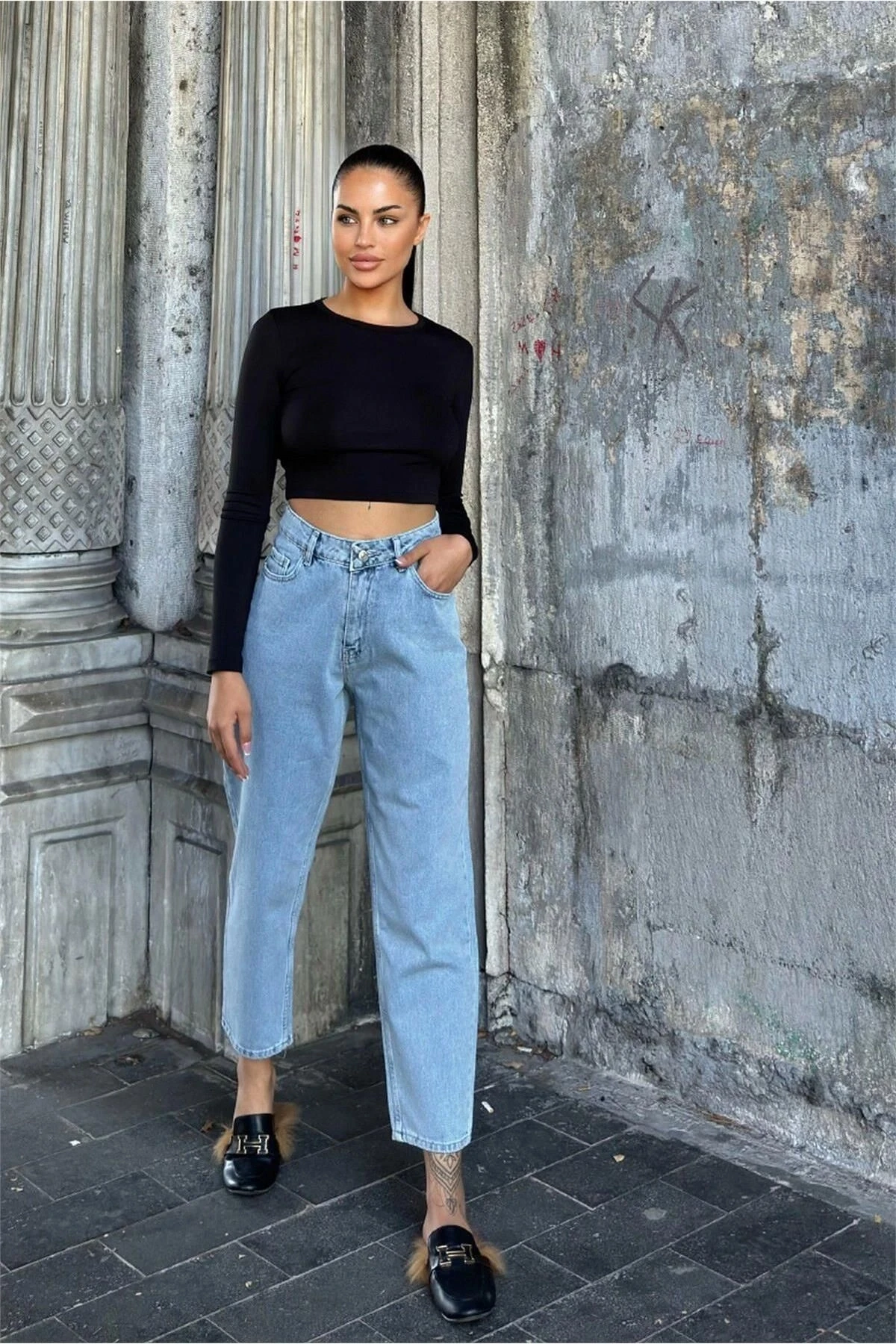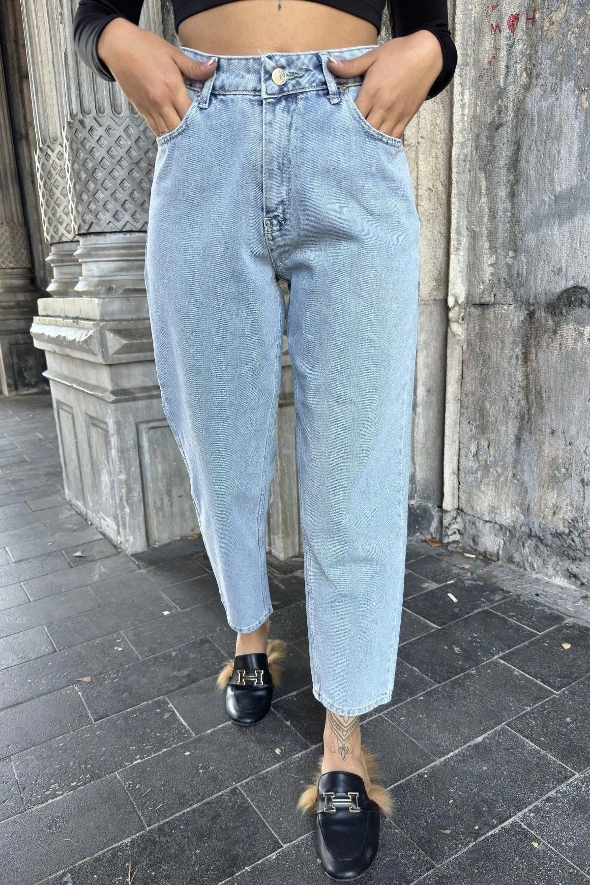 Kar Yıkama Mavi Yüksek Bel, Mom Jean Kot Pantolon