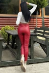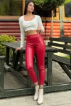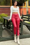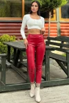 Kırmızı Yüksek Bel, Arkası Lastikli, Esnek Deri Tayt
