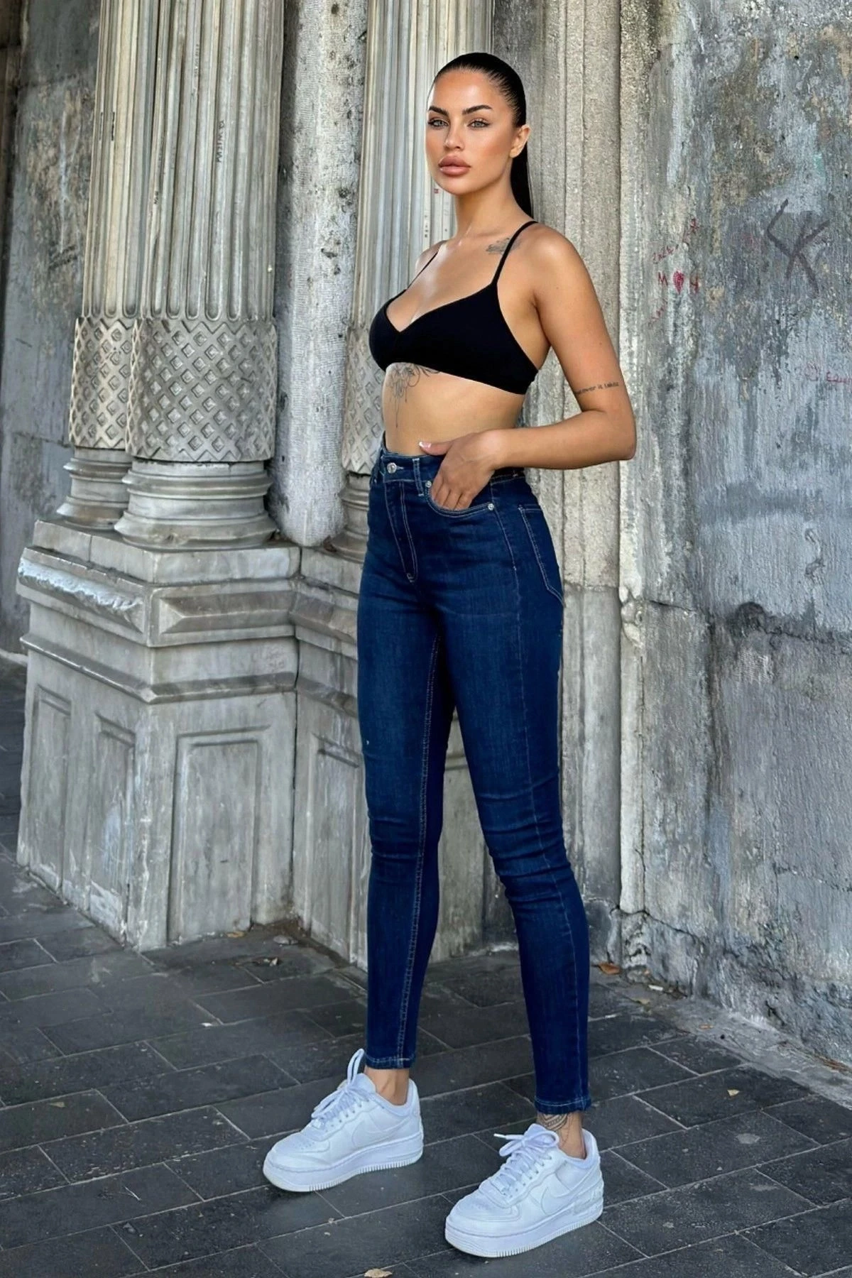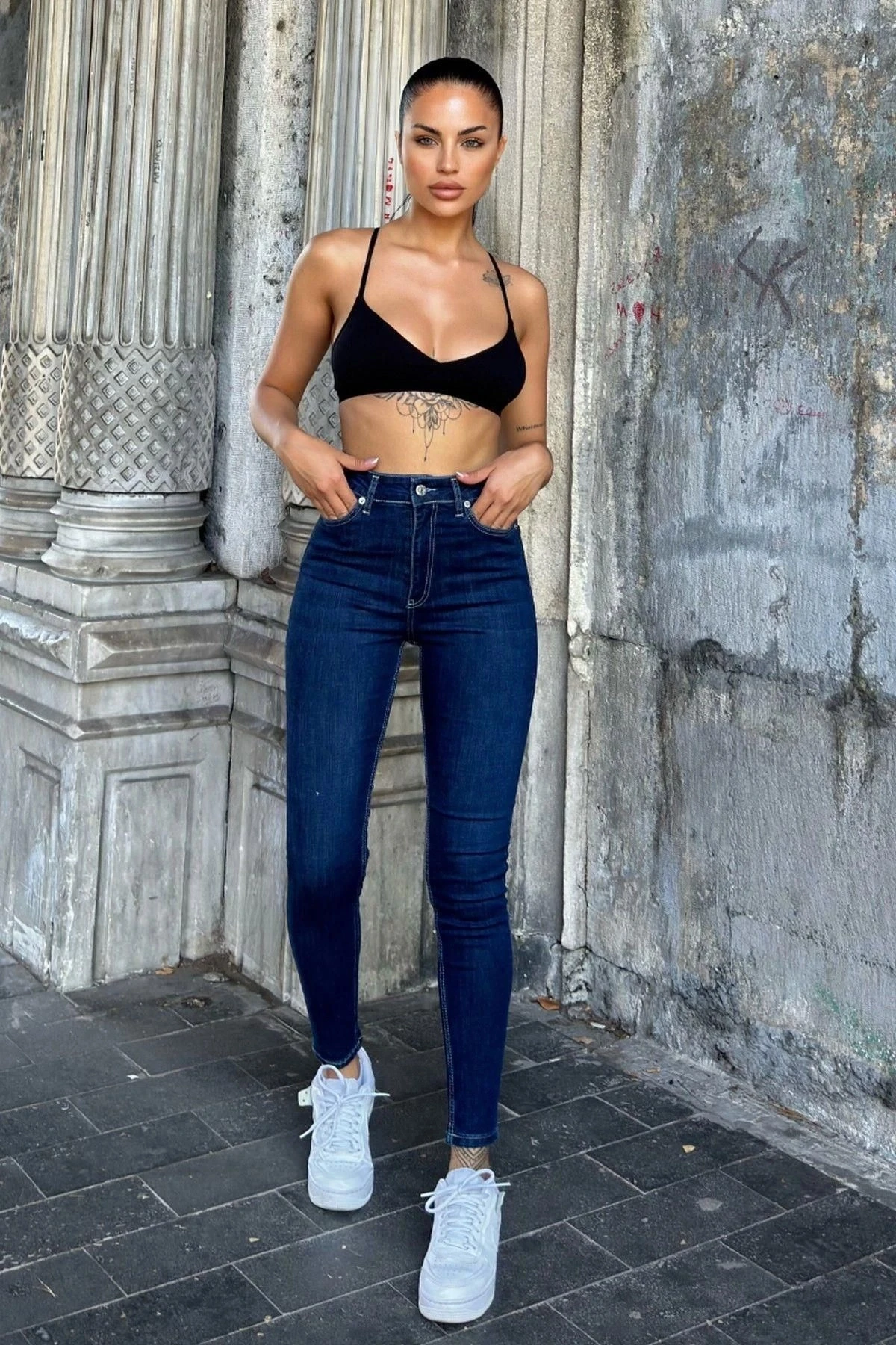 Koyu Mavi Yüksek Bel, Dar Paça, Skinny Jean Kot Pantolon