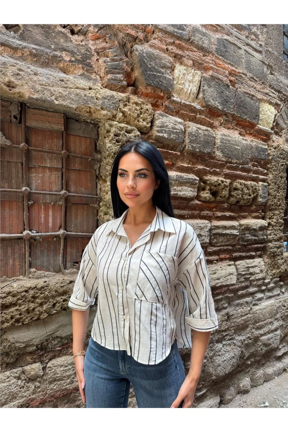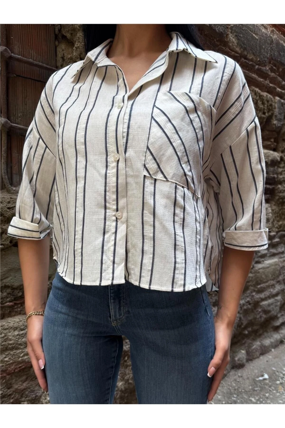 Laci Çizgili Cepli Uzun Kollu Gömlek