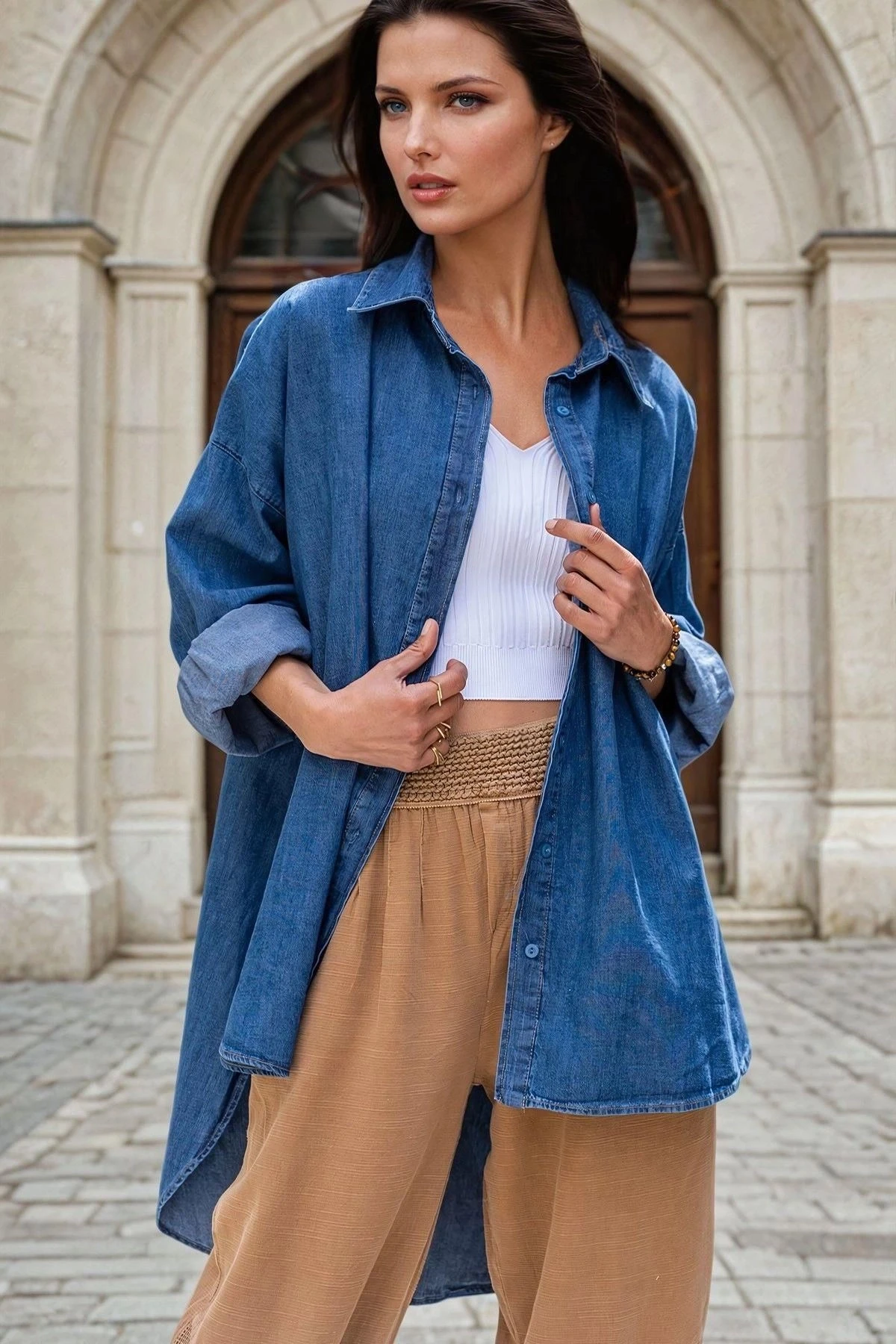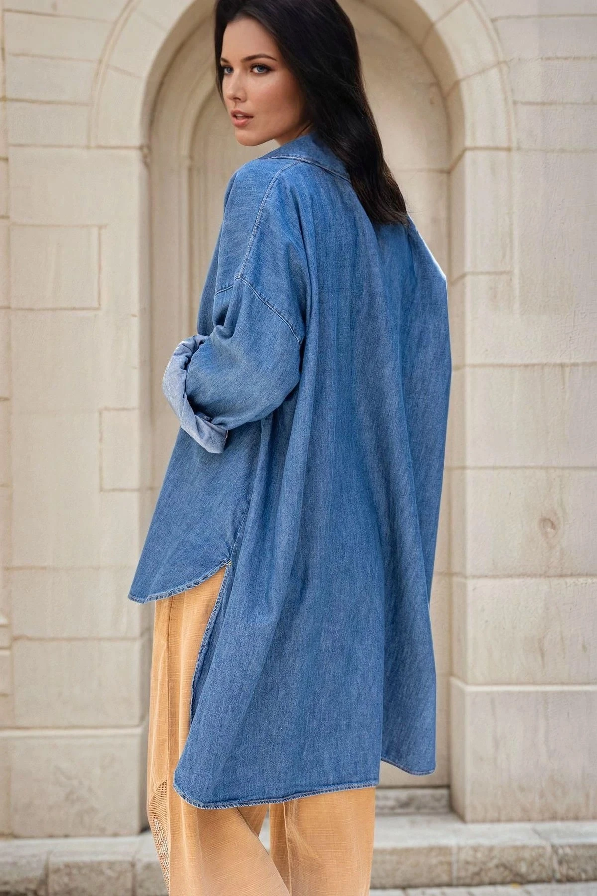 Lacivert Geniş Kesimli, Cep Detaylı, Kot Gömlek