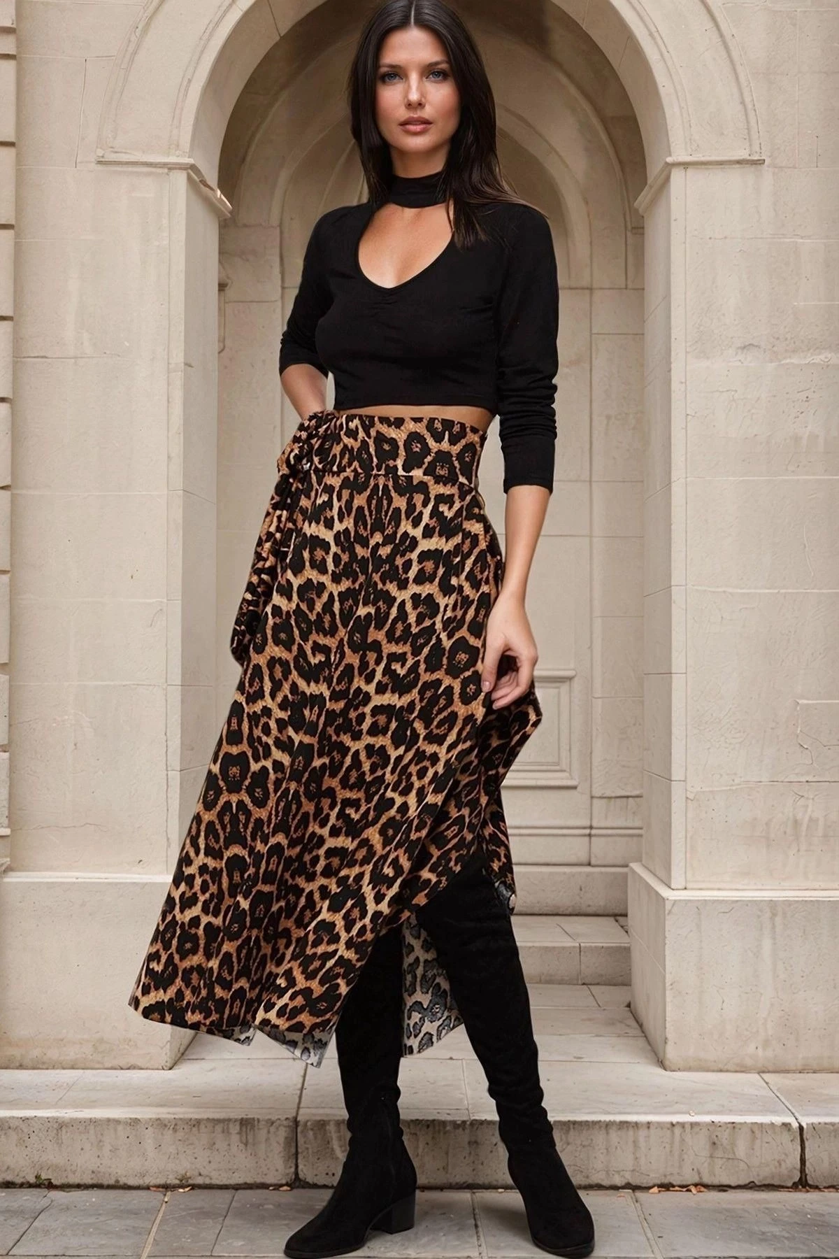 Leopar Desenli, Yüksek Bel, Asimetrik Kesim Etek