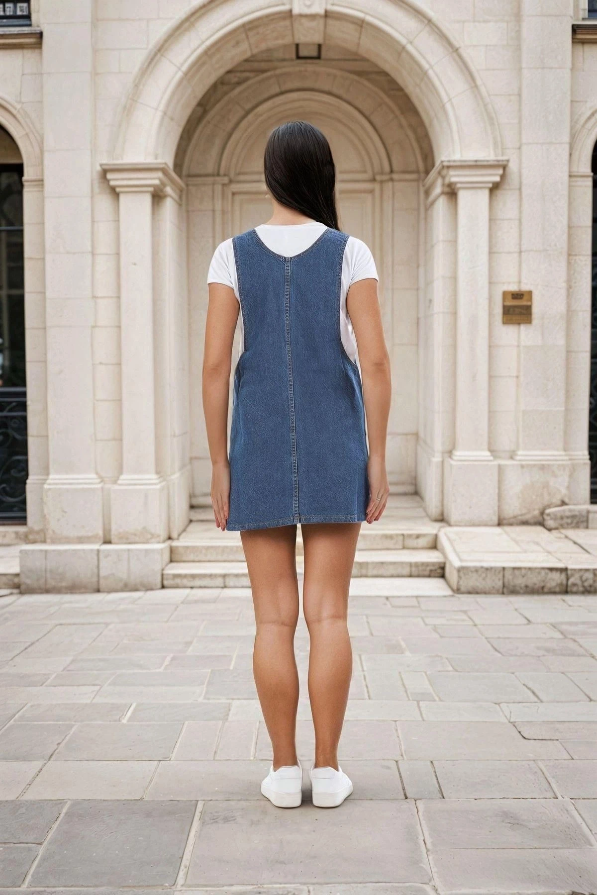 Mavi Askılı, Cepli, Kısa Kot Salopet