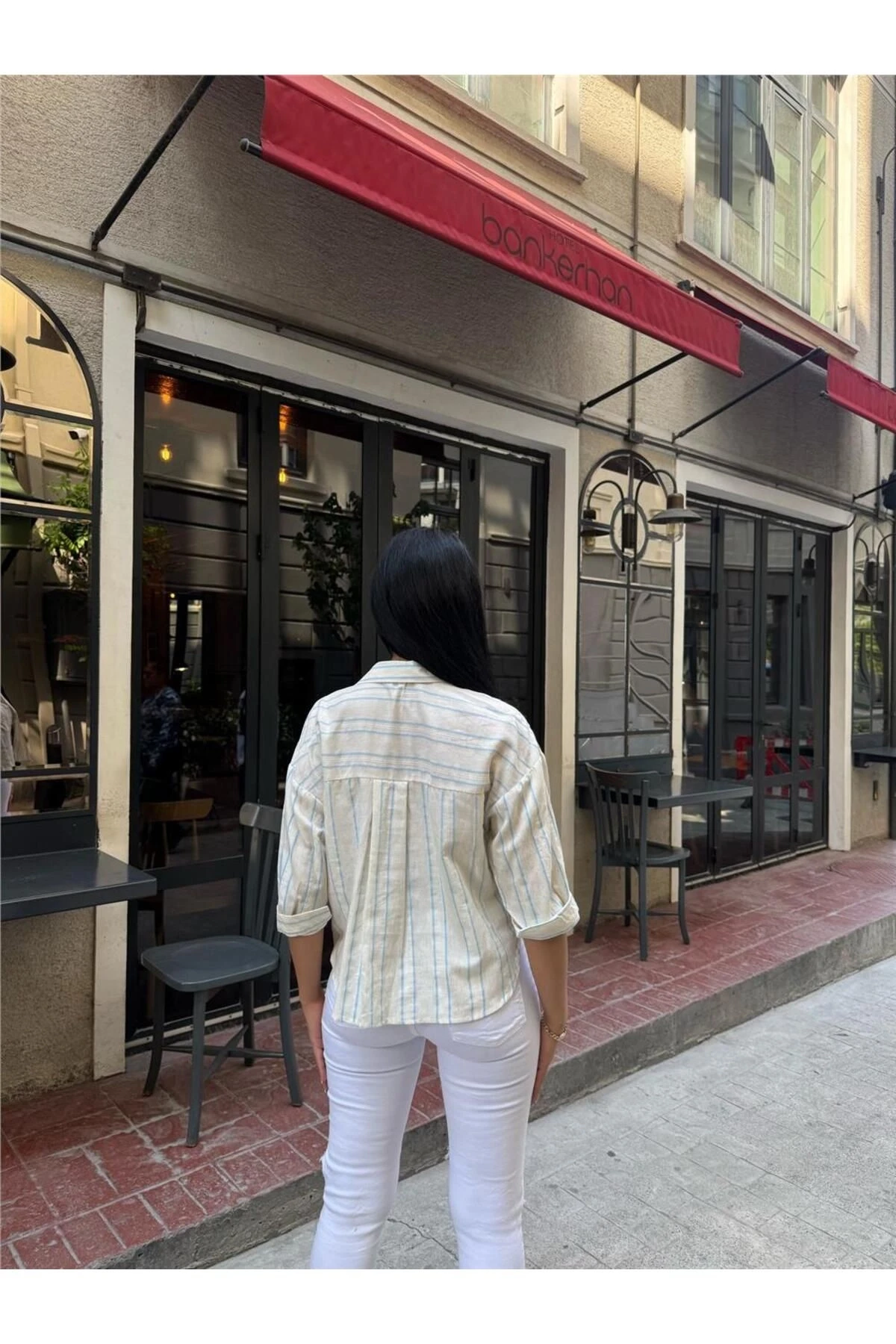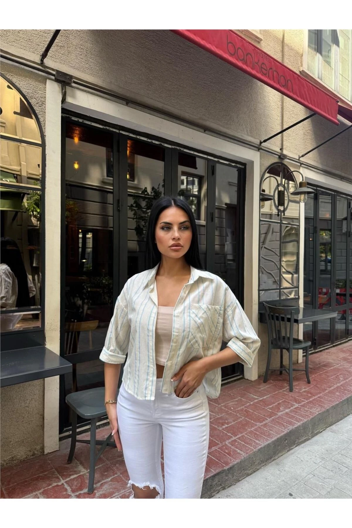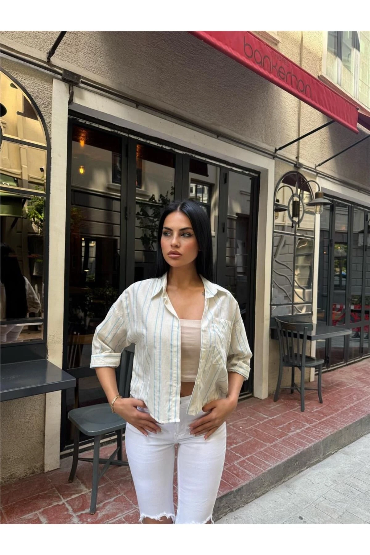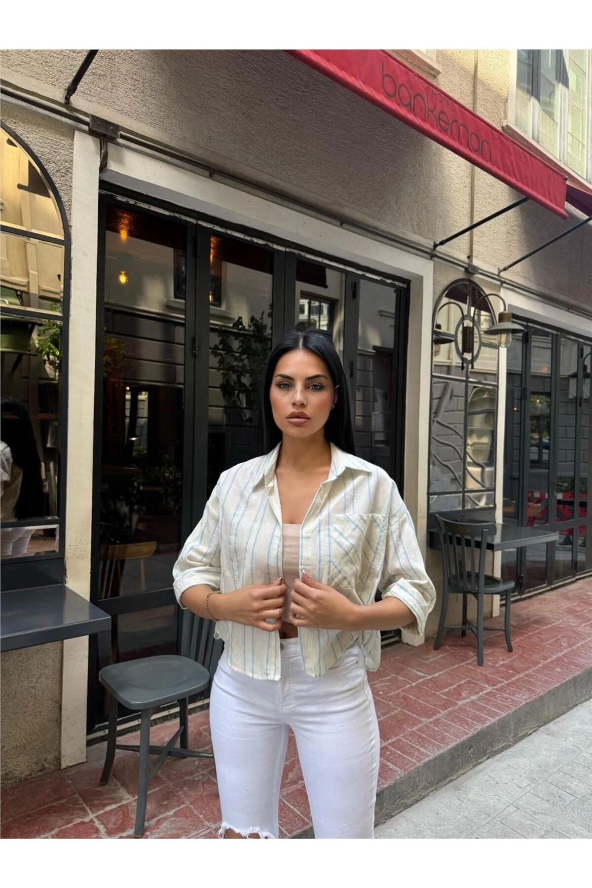 Mavi Çizgili Cepli Düğmeli Gömlek