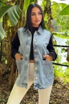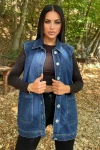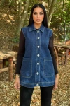 Mavi Denim Kolsuz, Düğmeli, Geniş Cepli Uzun Kot Yelek