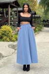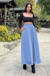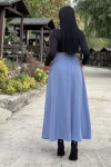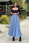 Mavi Lastikli Yüksek Bel, A Kesim, Dökümlü Ve Salaş, Uzun Kupra Etek