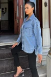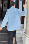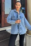 Mavi Oversize Kot Cepli Düğmeli Ceket Gömlek