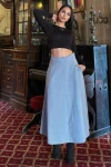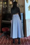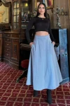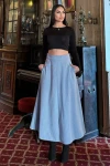 Mavi Yüksek Bel, Cepli, Kiloş Kesim, Pötikare Örme Kaşe Uzun Etek