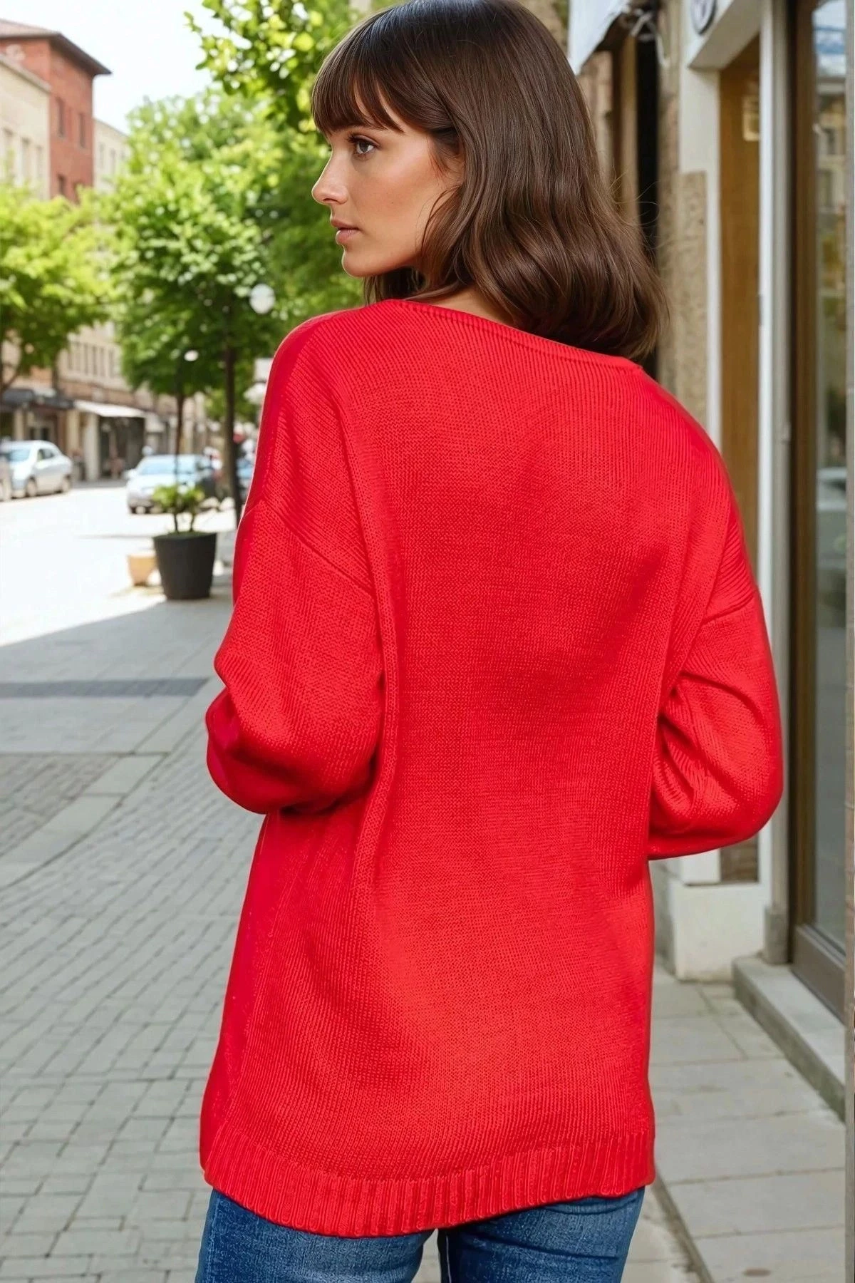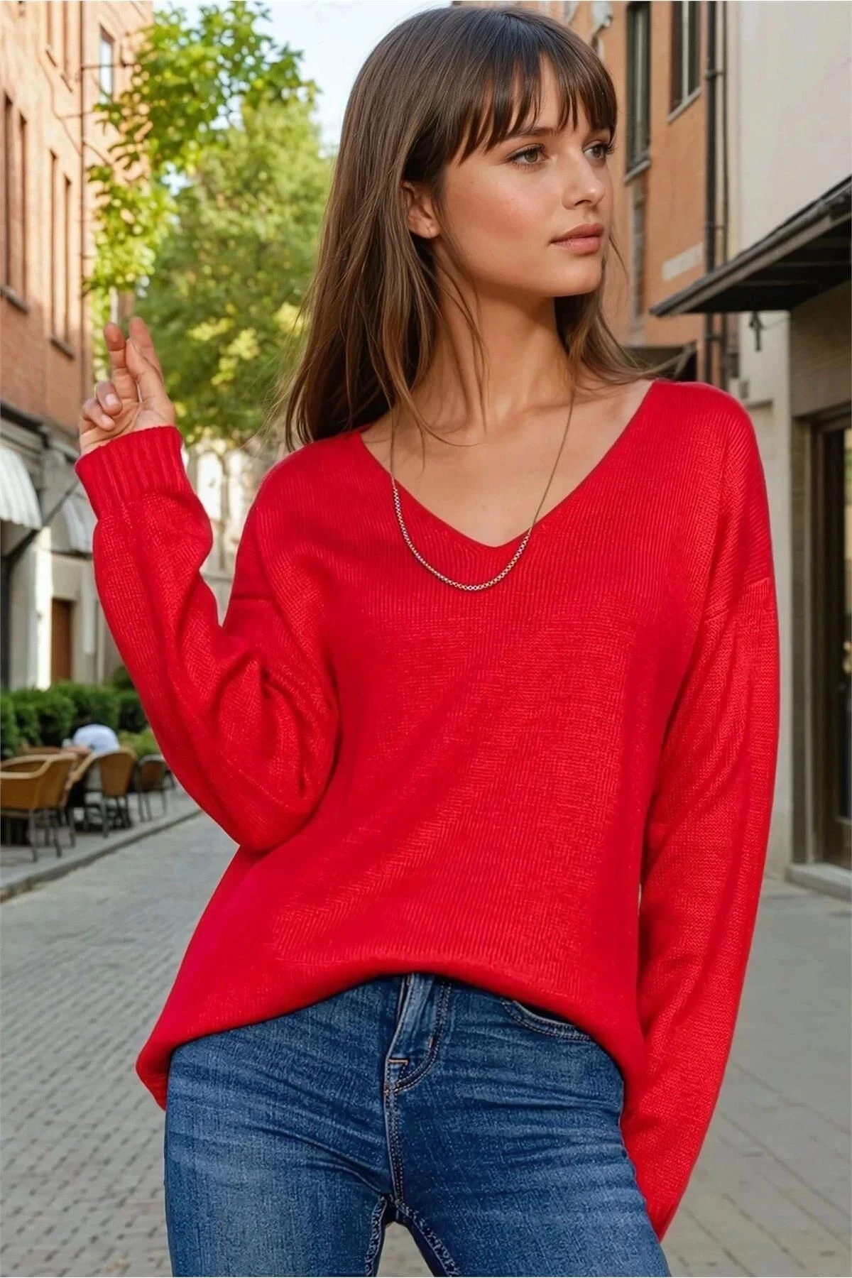 Mercan V Yaka, Hafif Ve Salaş Dokulu, Basic Triko Kazak