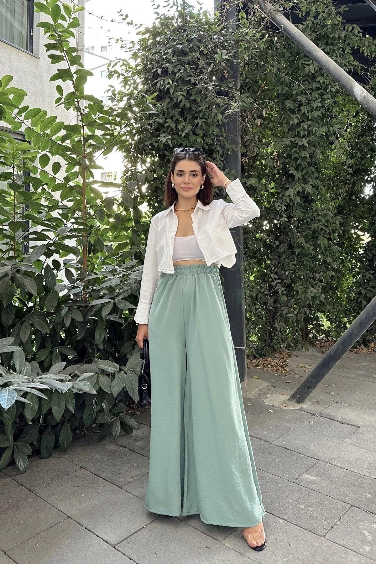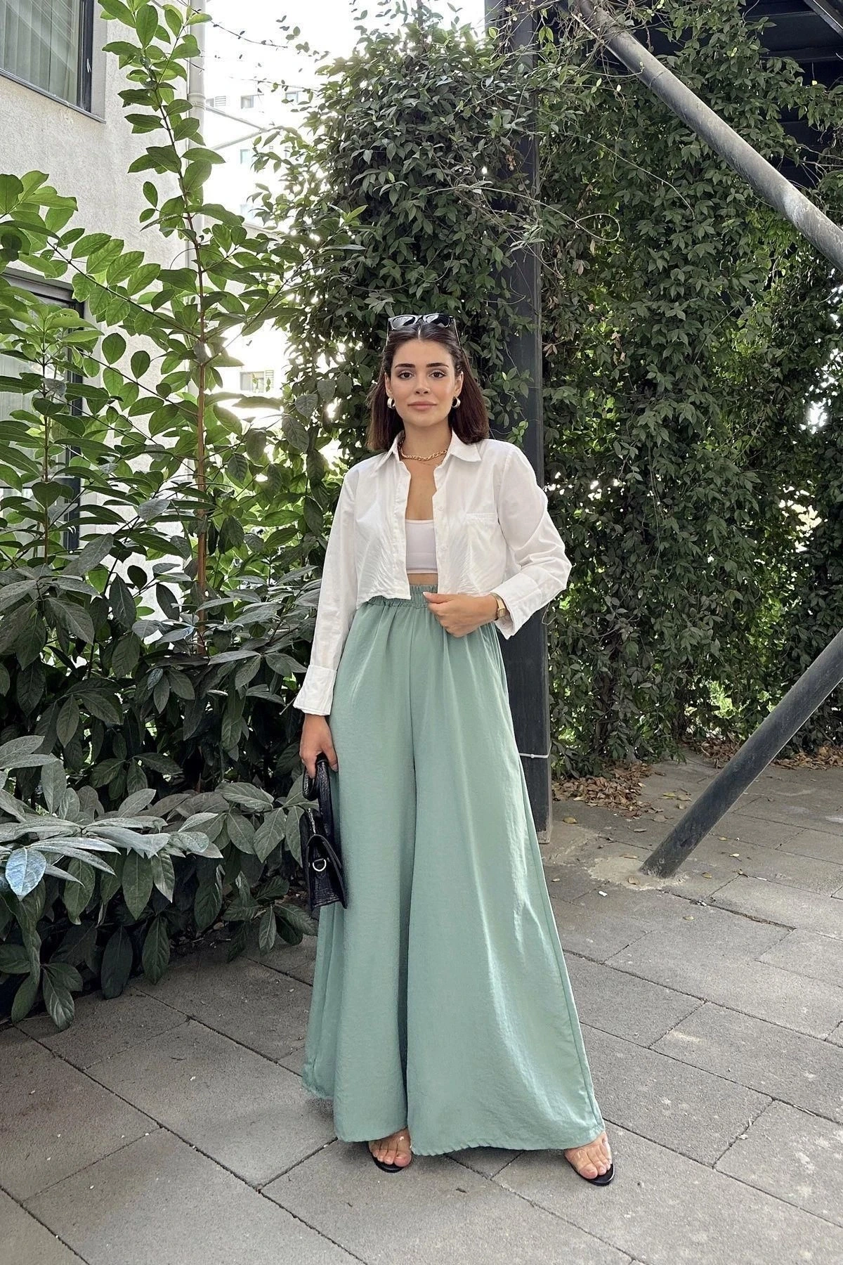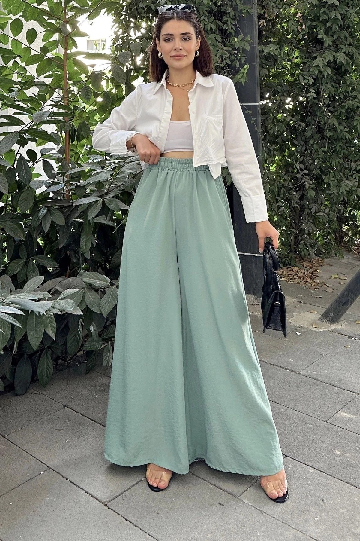 Mint Beli Lastikli, Cepli, İspanyol / Bol Paça Özel Kumaş, Rahat Kalıp Pantolon ile tarzınıza ferah bir dokunuş katın! Bu pantolon, özel tasarımı ve rahat kesimi ile hem şıklığı hem de rahatlığı bir araya getiriyor.; Özellikle tesettür giyimde hem zarif hem de rahat bir seçenek sunuyor.; Mint rengi, pantolonun ferah ve huzurlu bir havaya sahip olmasını sağlarken beli lastikli tasarım da giyim sürecini kolaylaştırırken aynı zamanda pantolonun belinize oturmasını sağlıyor.; İspanyol / bol paça kesimi, hareket özgürlüğü sunarken aynı zamanda modern ve zarif bir görünüm katıyor.; %60 polyester ve %40 cotton karışımından üretilmiş olan kumaş, pantolonun rahatlığını artırıyor.; Polyesterin dayanıklılığı ve pamuğun yumuşaklığı bir araya gelerek uzun süreli kullanım için ideal bir seçenek sunuyor.; Cepli tasarım, kullanışlılık katarken özel kumaşın dokusu da pantolona özgün bir hava katıyor.; Rahat kalıp kesimi, gün boyu rahat bir giyim deneyimi sunarken aynı zamanda şık bir tarz oluşturmanıza olanak sağlıyor.; Uzunluğu 102 cm olan bu pantolon, hem rahatlığı hem de şıklığı bir araya getirerek modern bir görünüm sunuyor.; Tesettür giyimde zarif ve ferah bir stil oluşturmak isteyenler için ideal bir seçenek!Mint Beli Lastikli, Cepli, İspanyol / Bol Paça Özel Kumaş, Rahat Kalıp Pantolon ile tarzınıza konfor ve şıklık katın.; Özgün tasarımı ve kaliteli kumaşı ile tarzınızı yansıtmanızı sağlayacak bu pantolon, her anlamda rahatlık ve stil sunuyor.