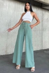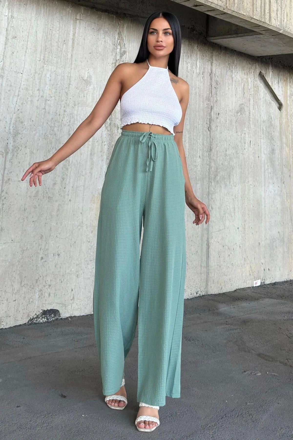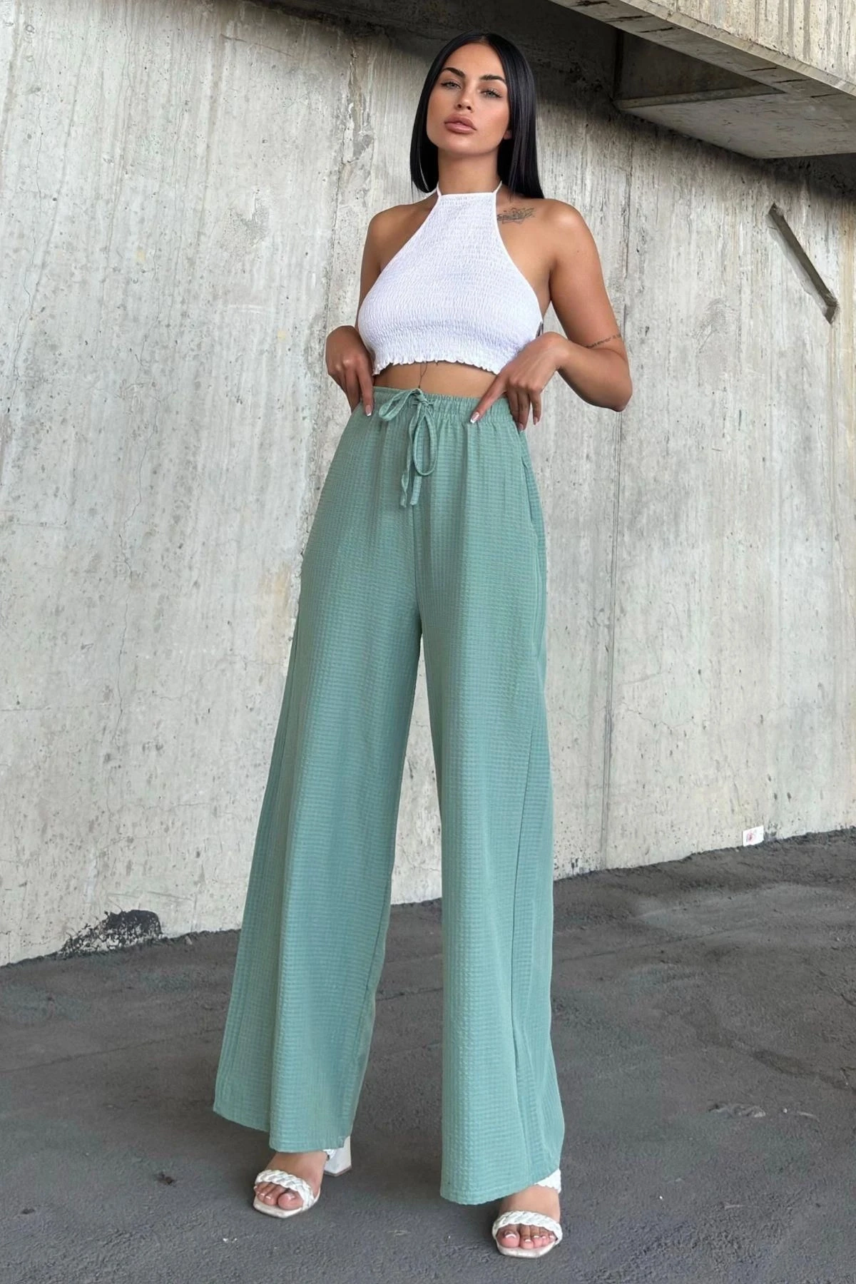Mint Renkli Lastikli Gofre Kumaş Pantolon